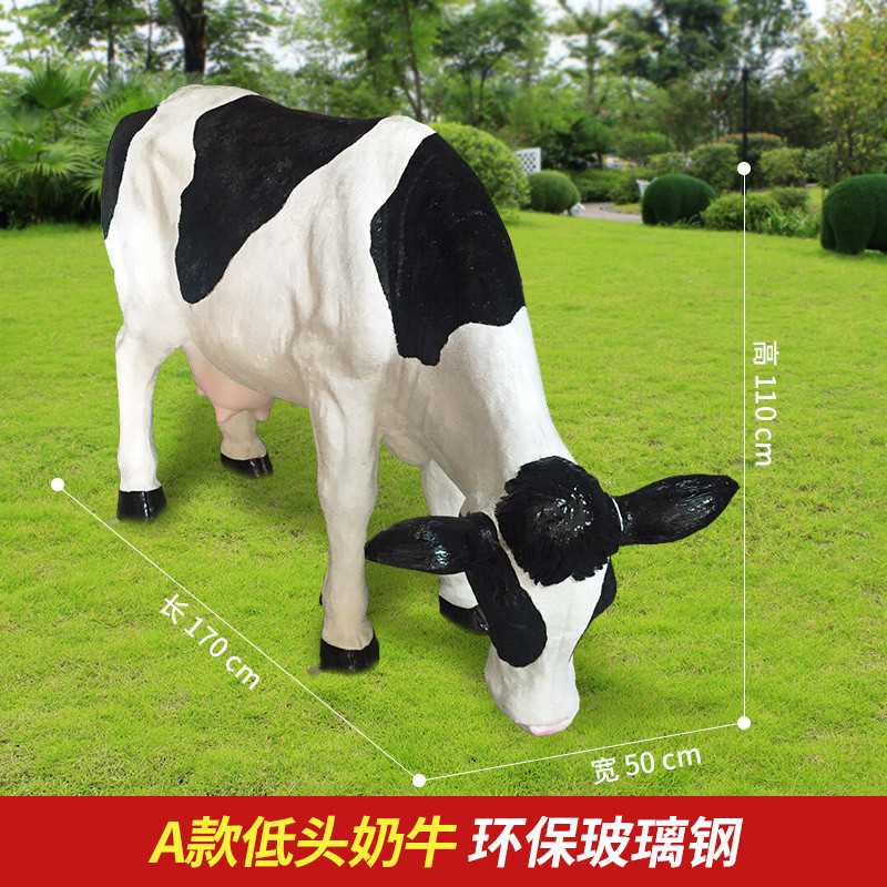 户外园林农场牧场仿真奶牛雕塑草坪小区大型玻璃钢动物牛模型摆件