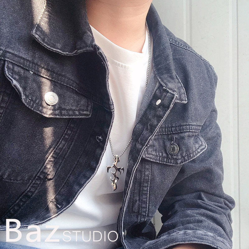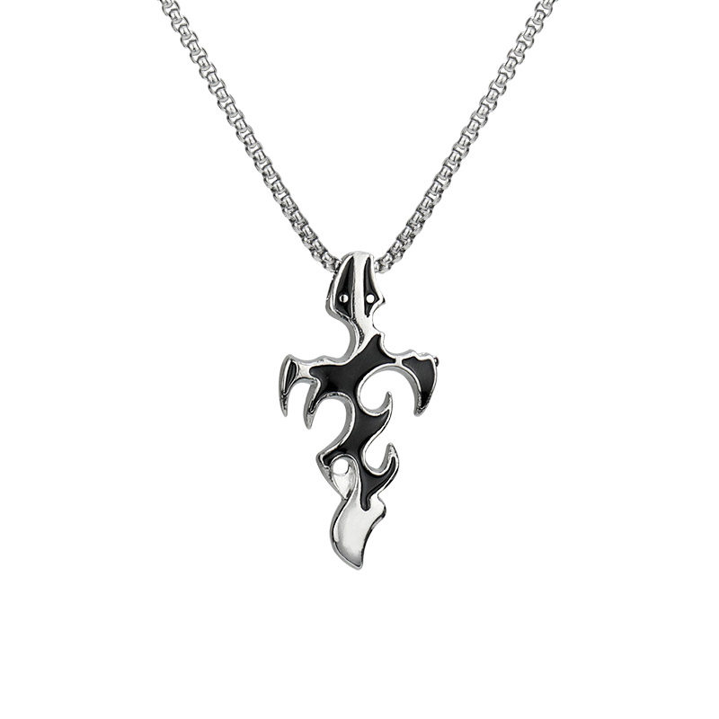 蹦迪潮酷火焰形项链男生嘻哈潮流十字架挂链嘻哈百搭高级感毛衣链