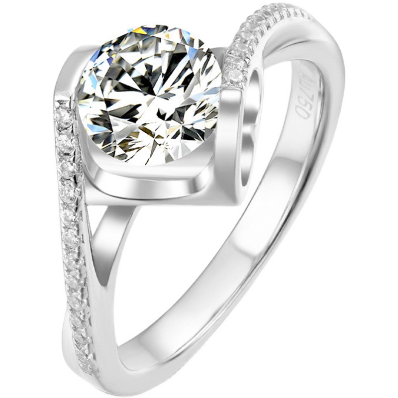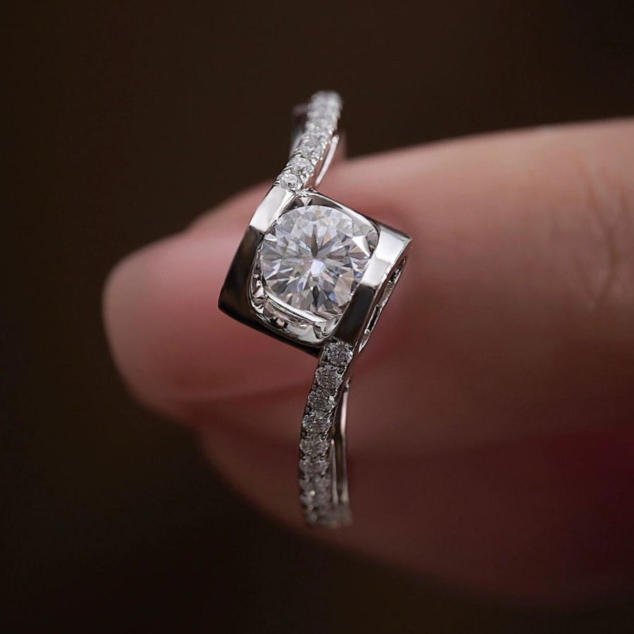 正品莫桑石钻戒女戒指纯银白金指环天使之吻时尚简约结婚仿真钻戒