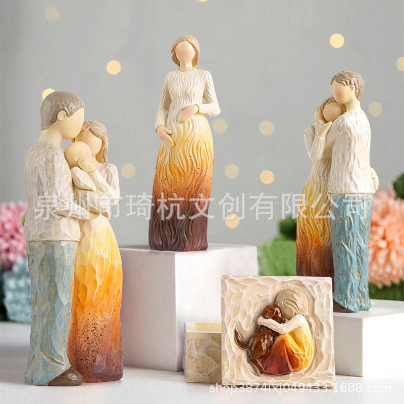 首饰盒母亲节亲情系列仿木刻一家人桌面摆件新品装饰父亲礼物