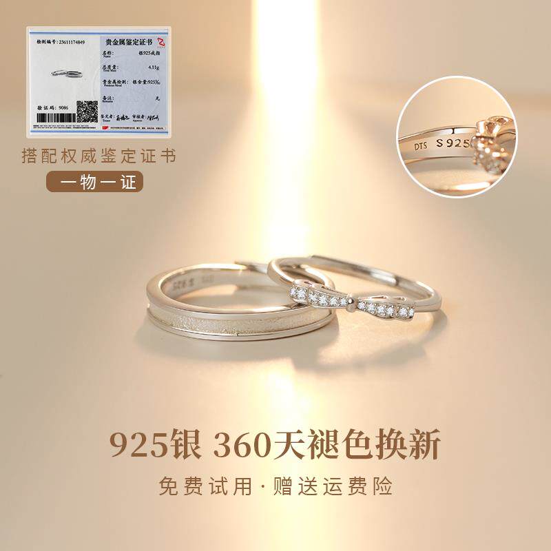 诺言情侣对戒小众设计高级感戒指银一对定制可调刻字送女友蝴蝶结