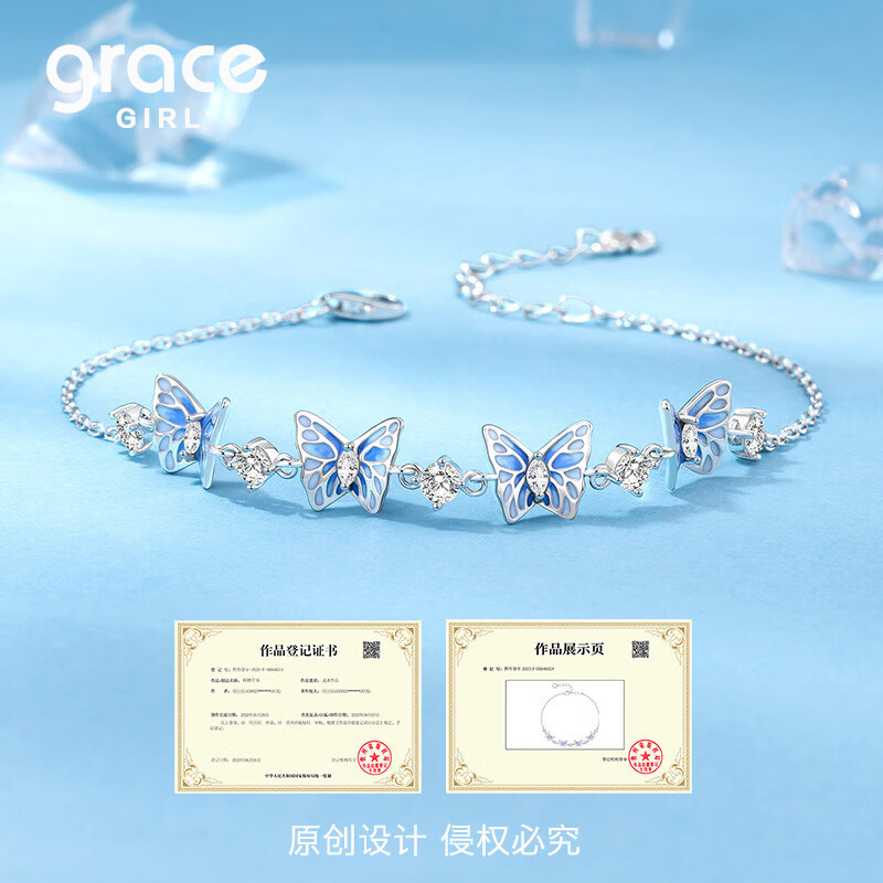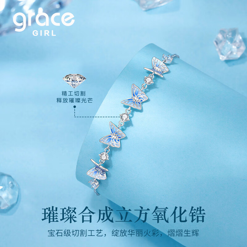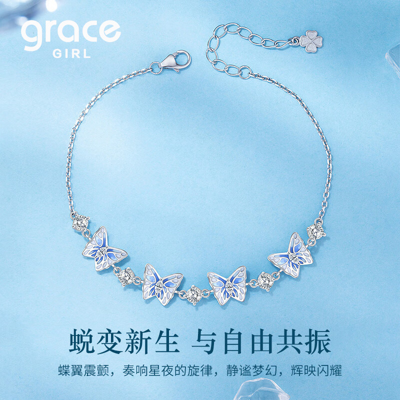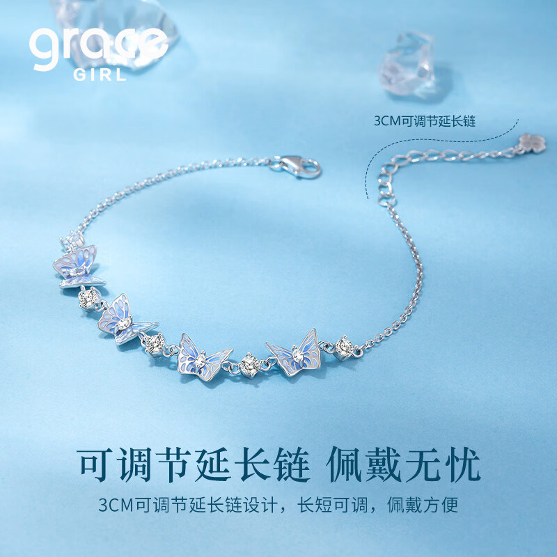 Grace Girl银翼蝴蝶蓝色手链轻奢小众精致高级感闺蜜生日礼物女生