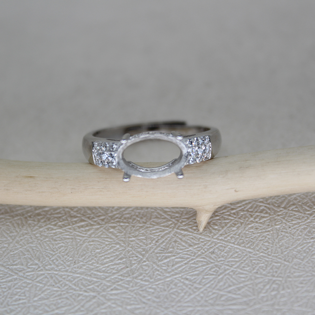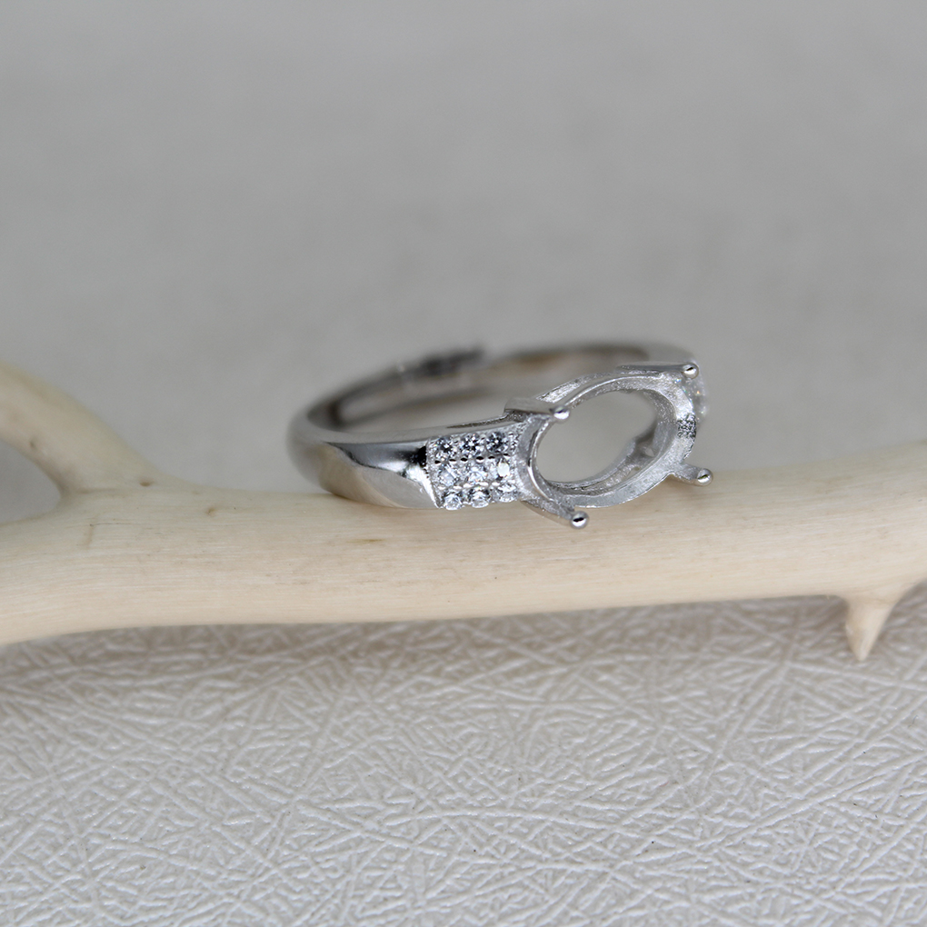 925纯银戒托刻面尖底宝石碧玺蓝宝石横版戒指空托6*9.5 6*9戒指托