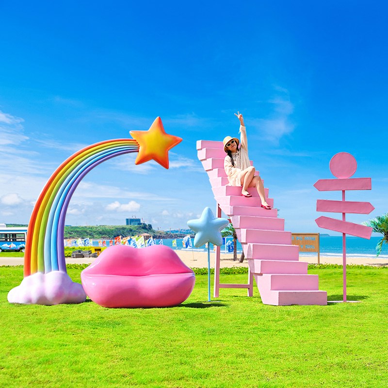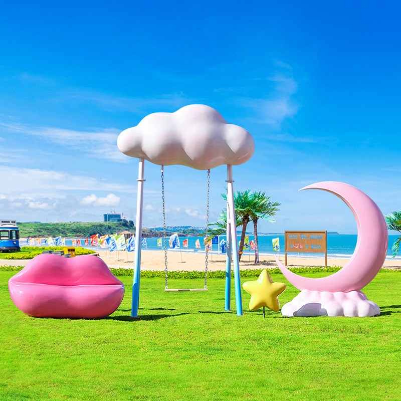 网红打卡户外景区海n边相框拍照大摆件玻璃钢秋千云朵美陈景观雕