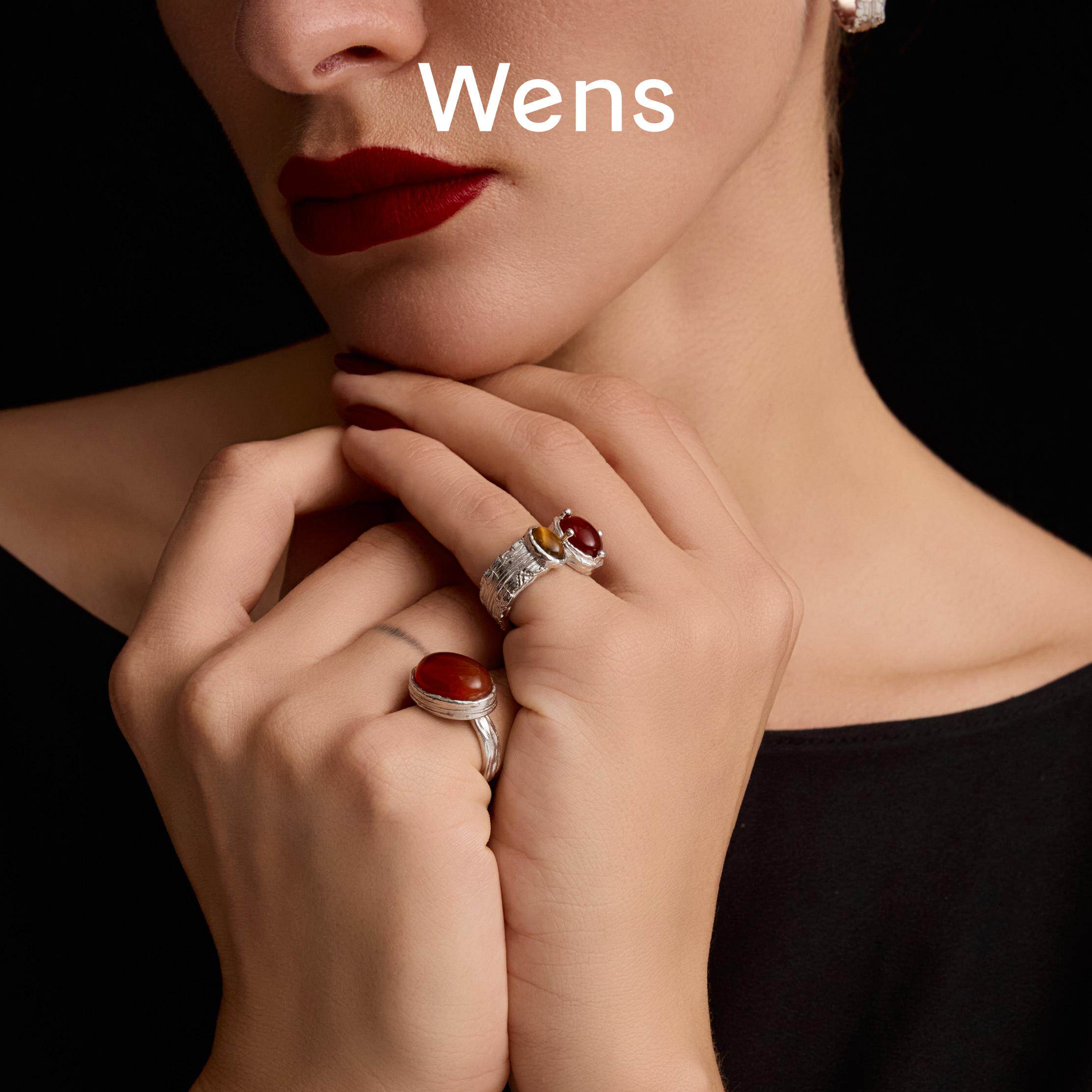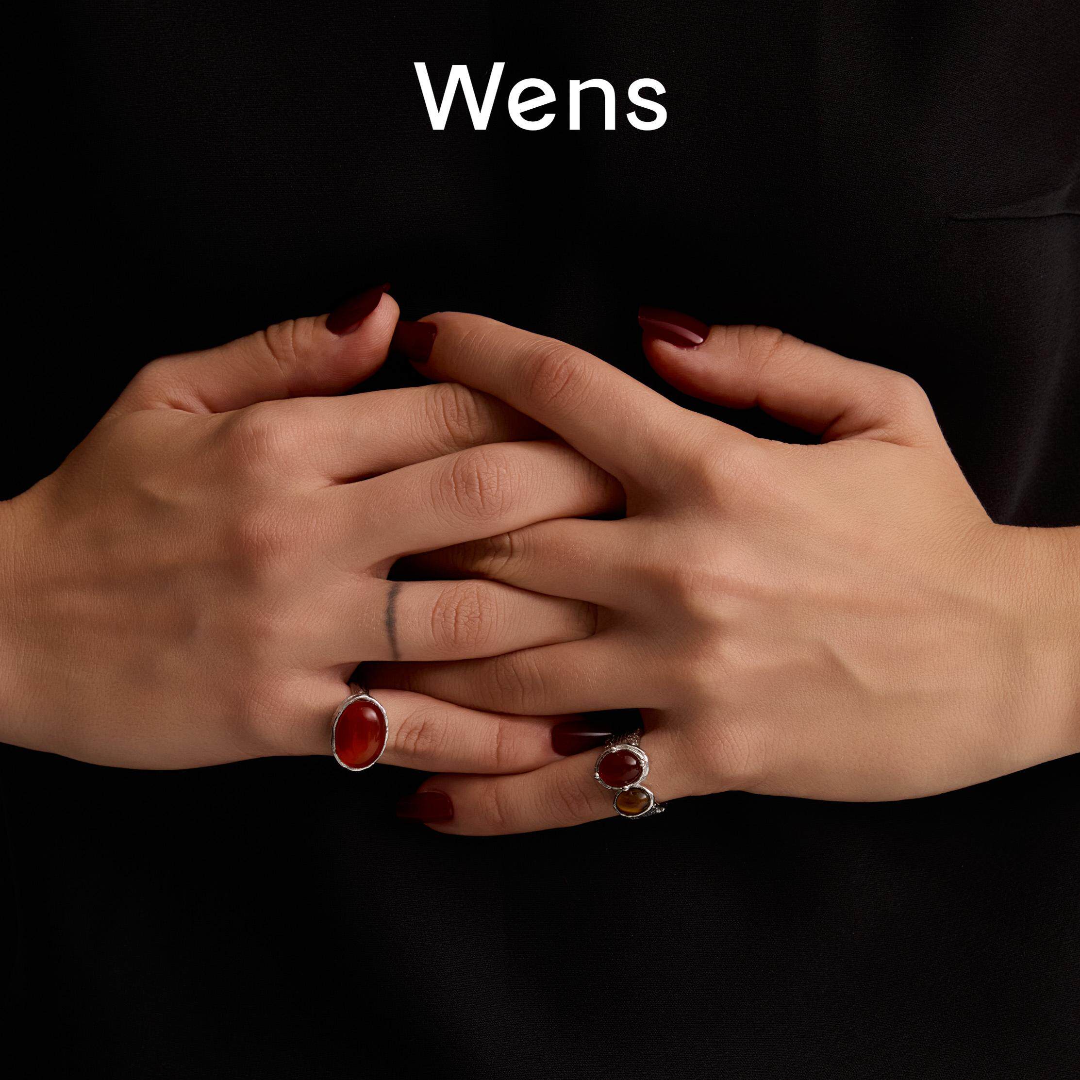 Wens复古红玛瑙戒指女高级感红色小众指环本命年轻奢宝石指环礼物