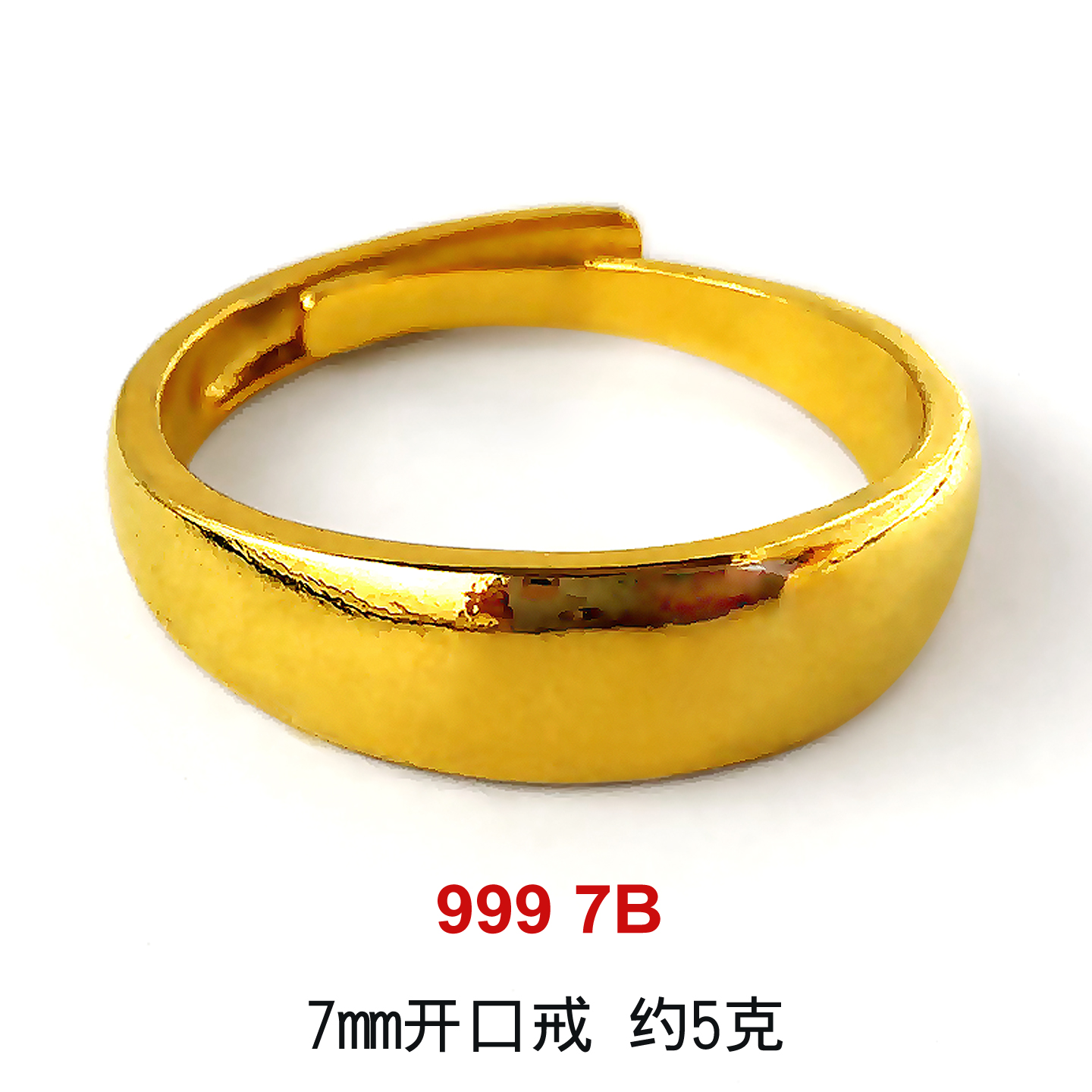 金店同款999开口戒指男镀金可调节24k真金色指环活口金戒指男宽面