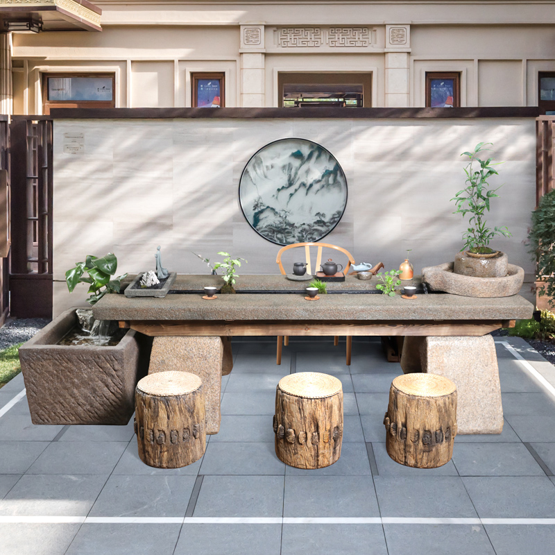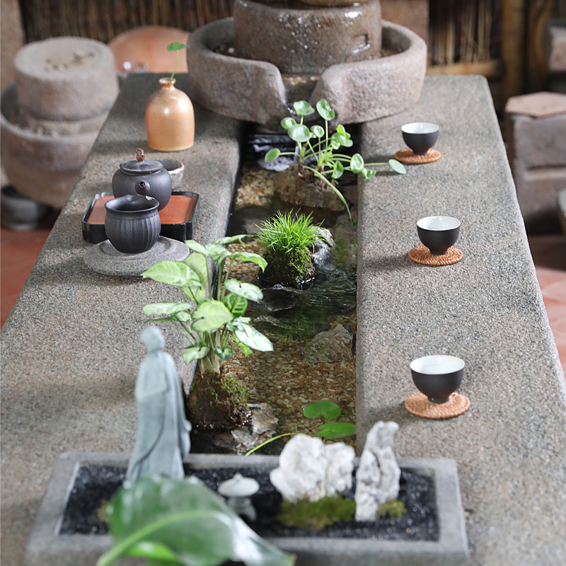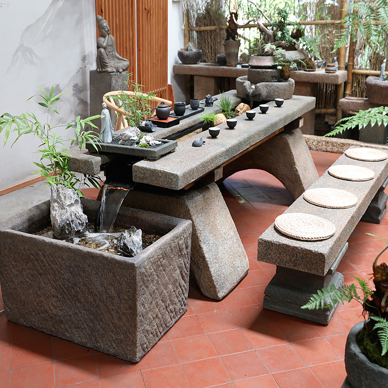 创意户外庭院流水茶桌禅意功夫茶桌椅组合客O厅循环养鱼缸茶台茶