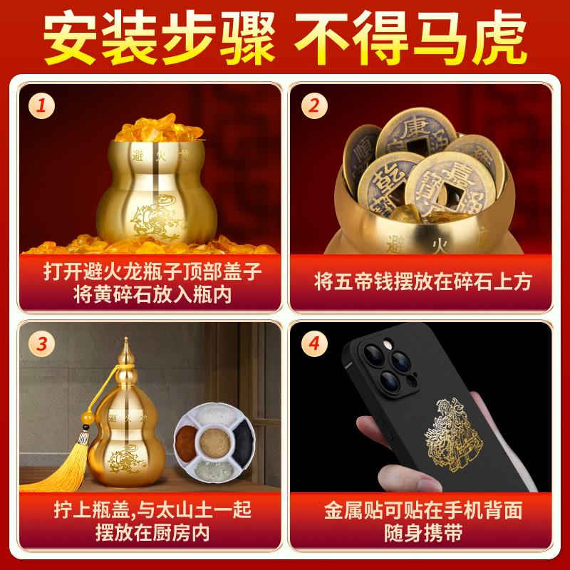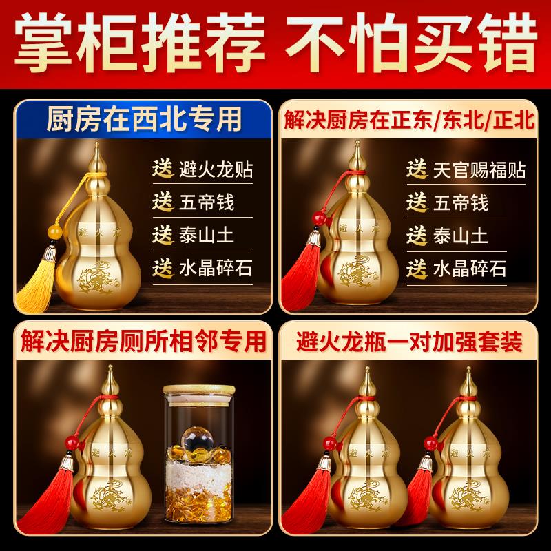 铜避火龙瓶子葫芦摆件厨房在西北方火烧天门黄碎石五帝钱桌面辟壁