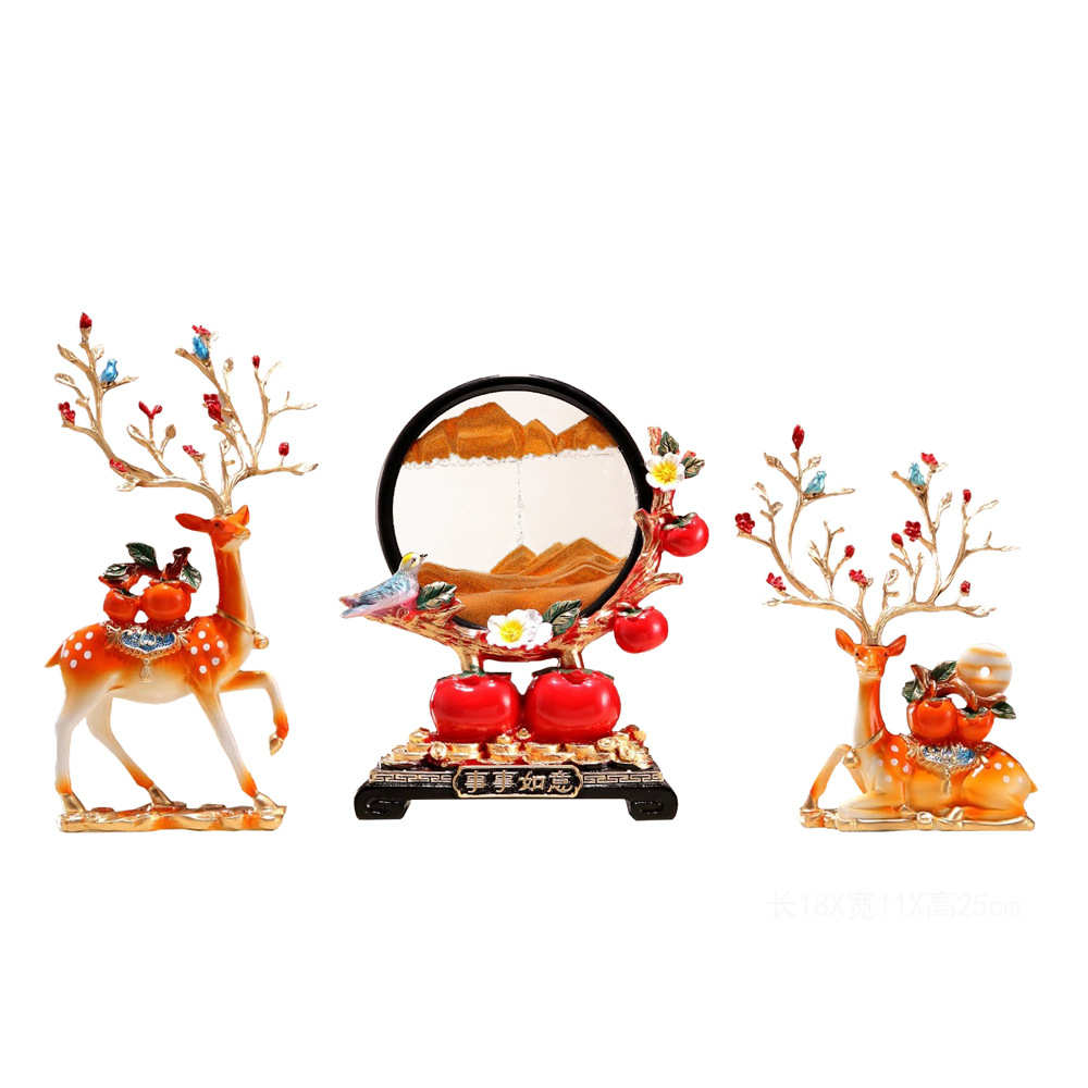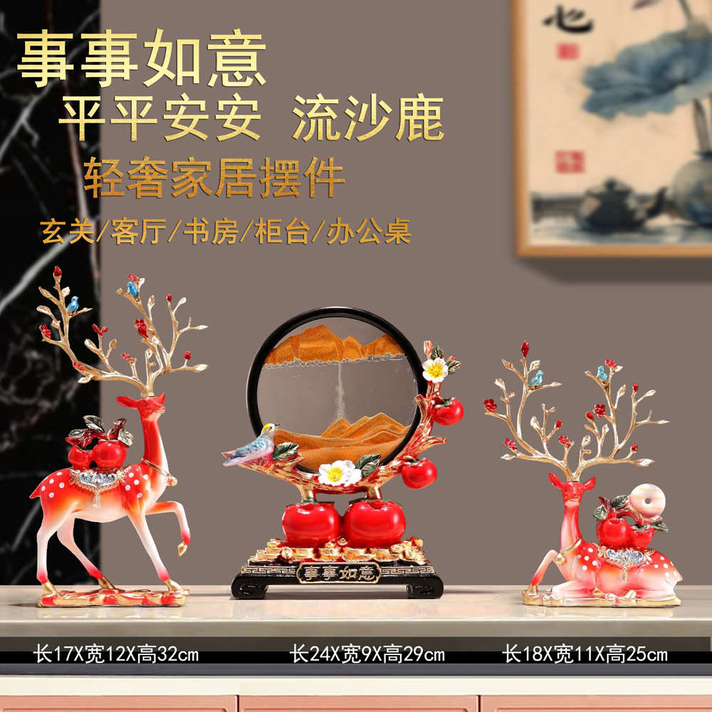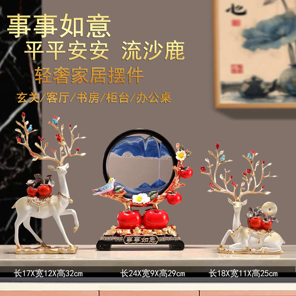 事事如意创意流沙画客厅鹿摆件乔迁新居礼品电视柜酒柜玄关平安喜