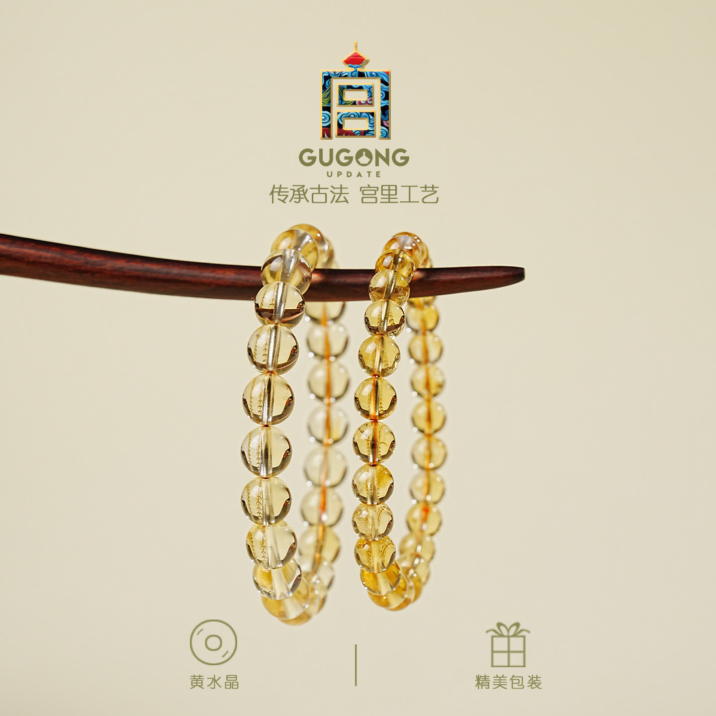 宫里上新天然巴西黄水晶手串女款黄色水晶手链串珠生日礼物送妈妈