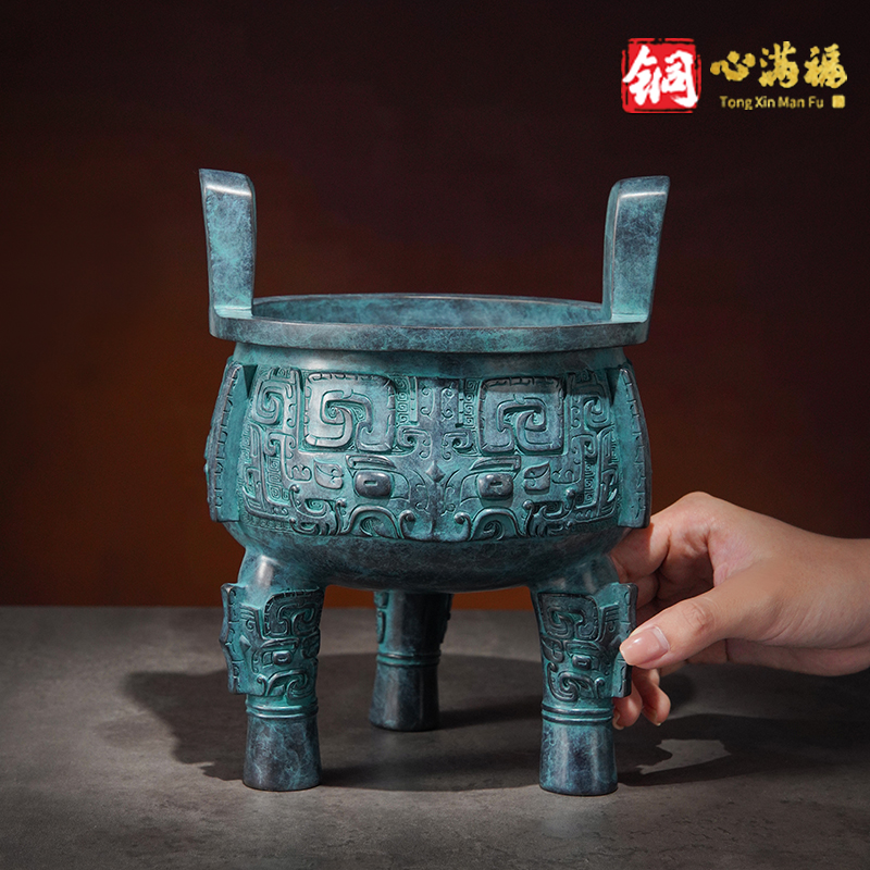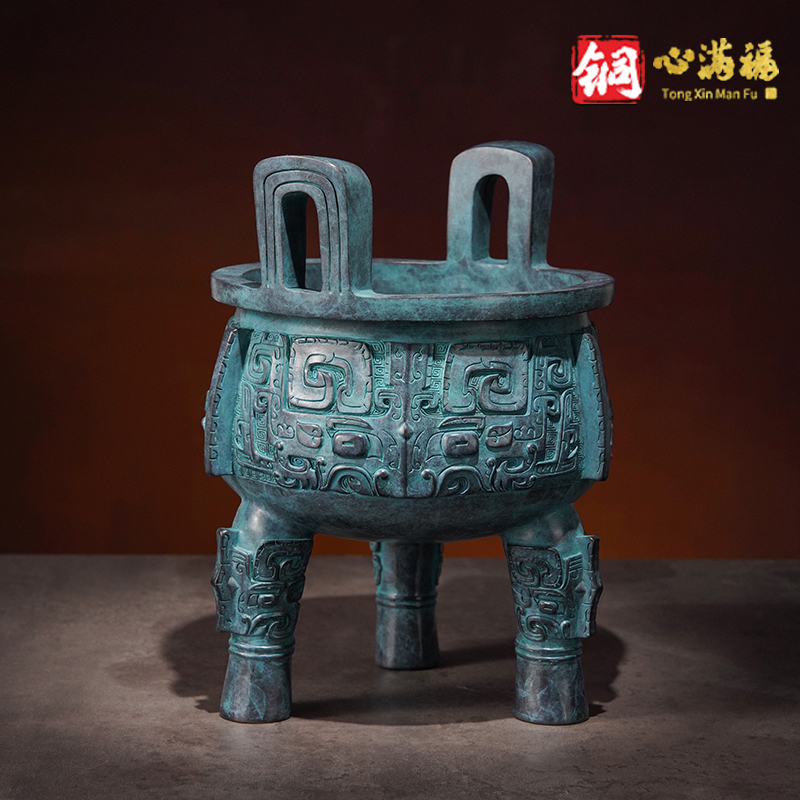 黄铜材质《圆鼎》客厅桌面玄关铜摆件 家居装饰工艺品 开业礼品