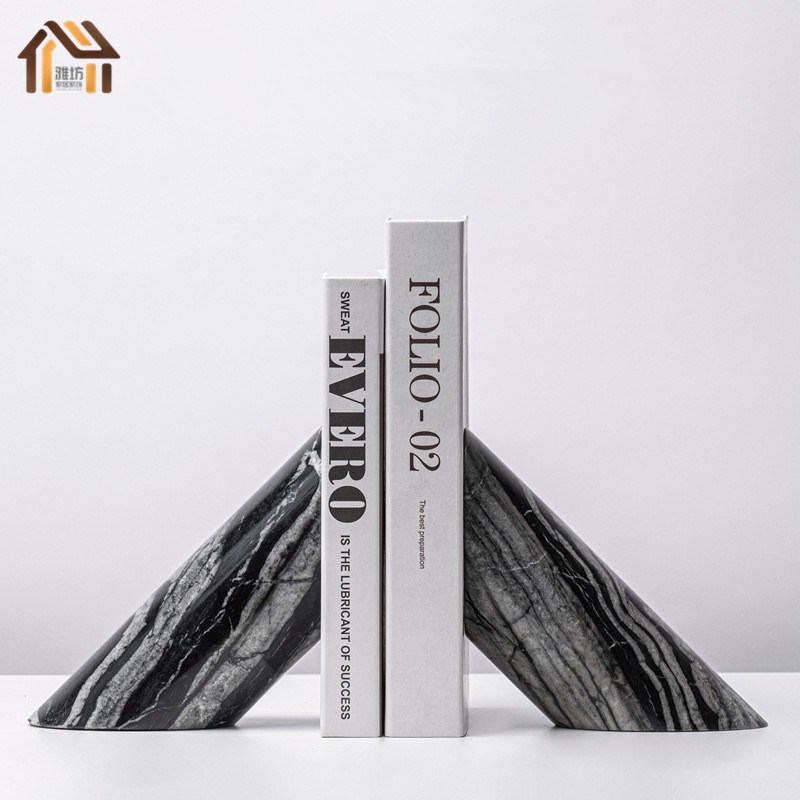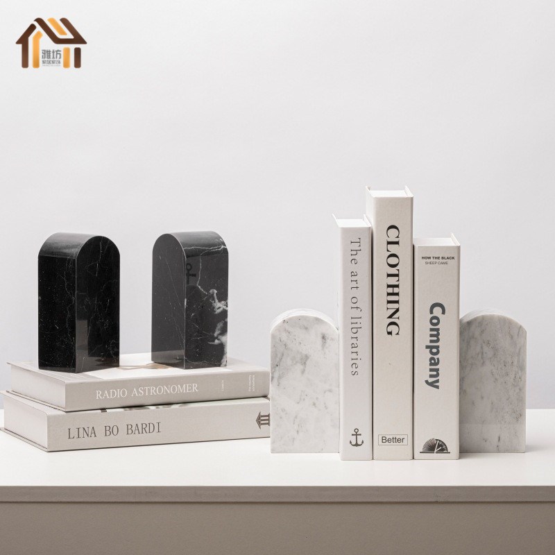 现代简约大理石书档摆件样板间办公室客厅书N房书挡书立家居装饰