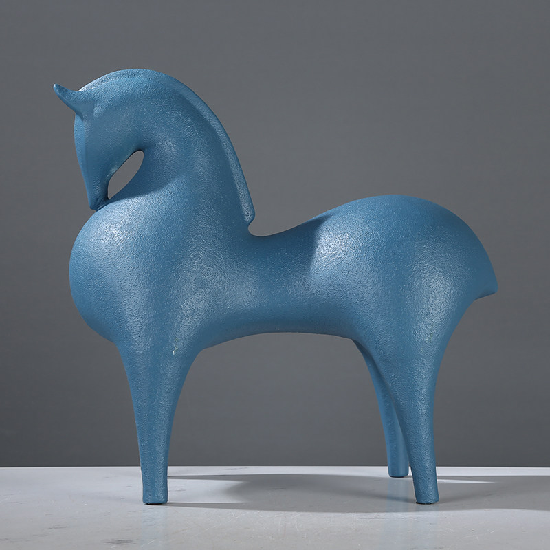 艺术蓝色骏马树脂摆件现代极简茶几D客厅办公室玄关装饰品北欧轻