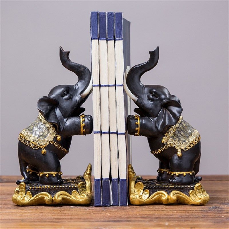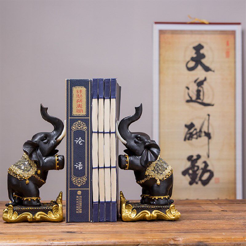 中式招财大象书挡摆件书房办公室书柜书架泰式书立书靠书夹装饰品