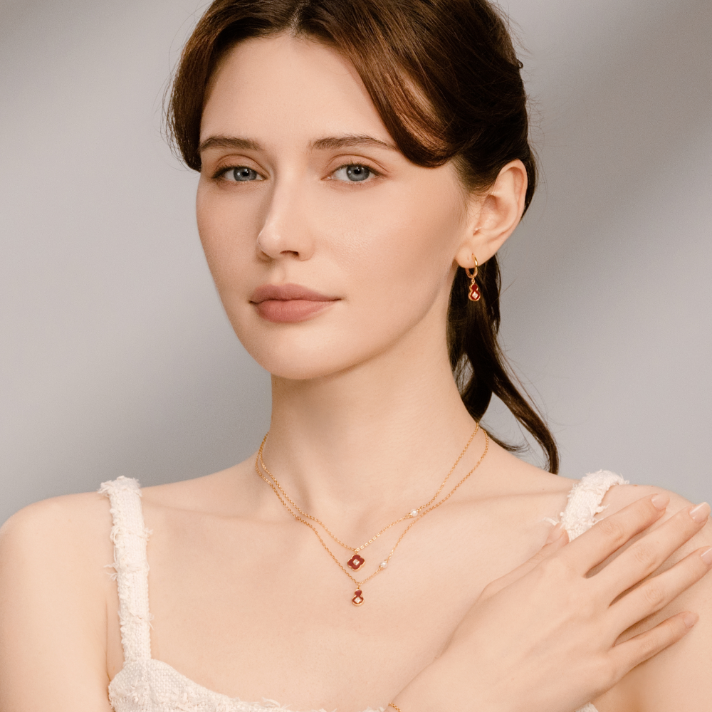 BABYBEI初贝小红运项链925银贝珠叠戴葫芦爱心钱币四叶草利是珐琅