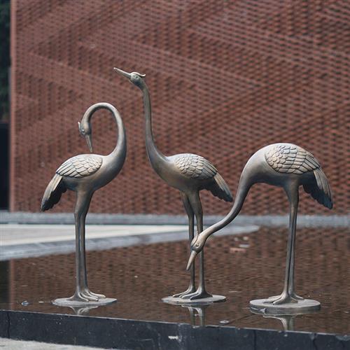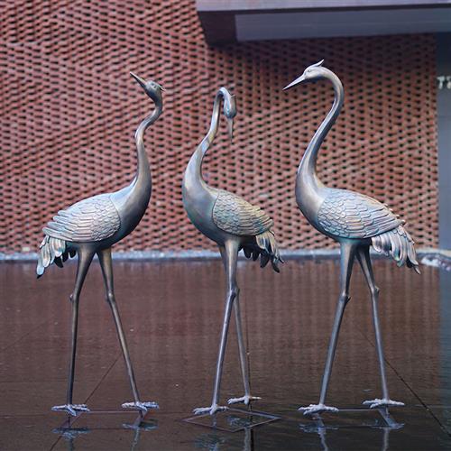现代仿铜仙鹤雕塑户外大型玻璃钢模型草坪园林水池丹顶鹤景观摆件