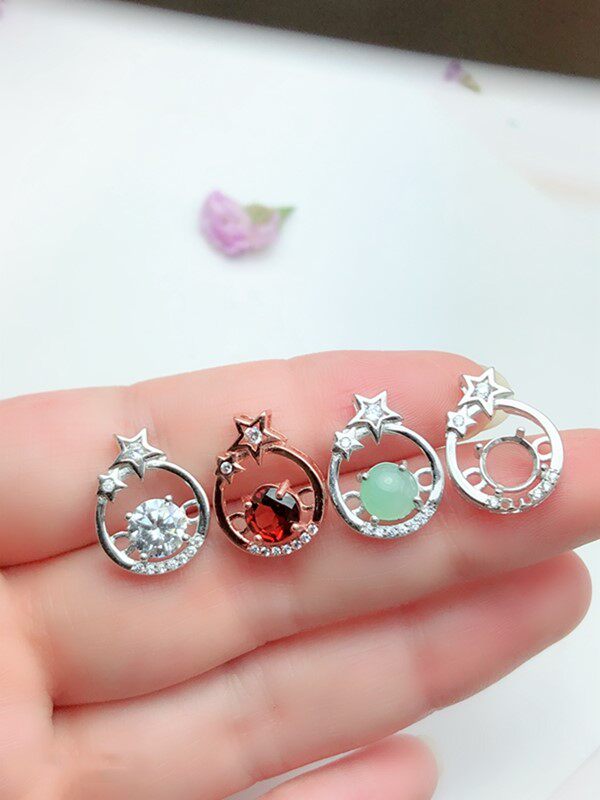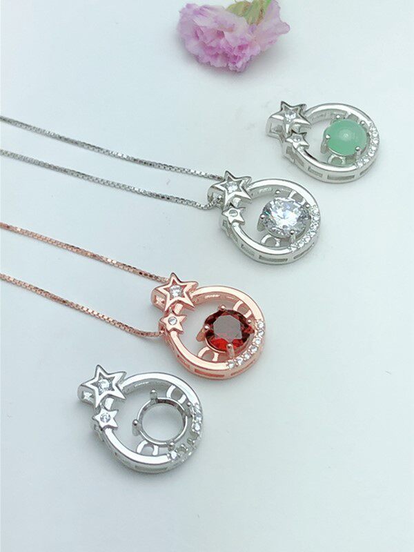 S925银克拉钻吊坠成品 空托圆6.5mm可镶嵌莫桑钻水晶托帕翡翠等