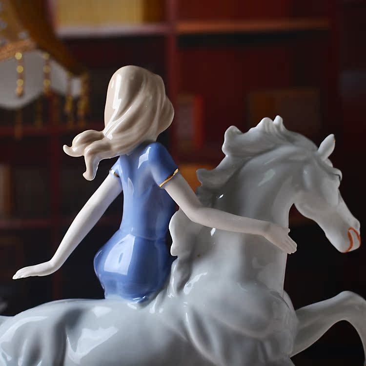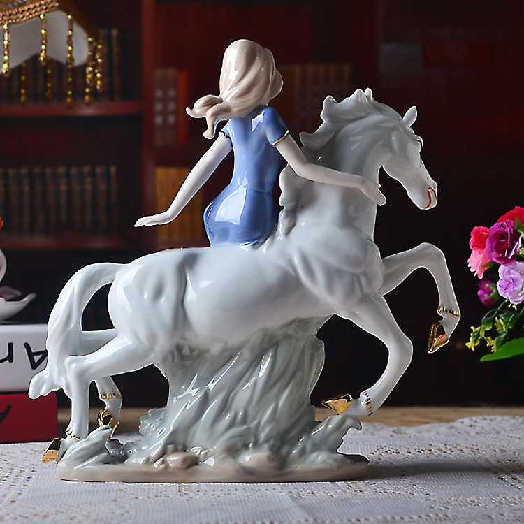新品包邮 欧式骑马少女 陶瓷工艺品婚房摆件家居装饰品陶瓷人物