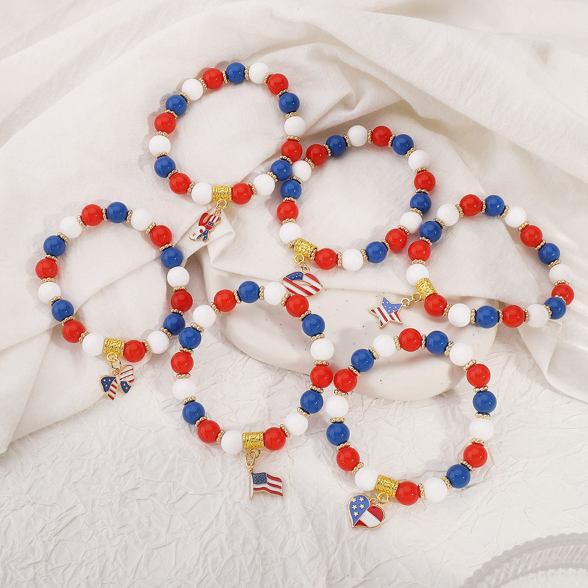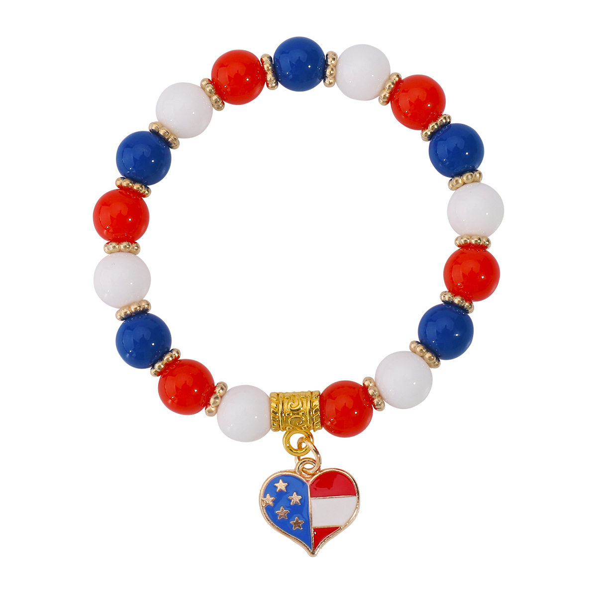 跨境美国独立日红蓝白旗亚克力串珠手链 简约几何形滴油手串首饰