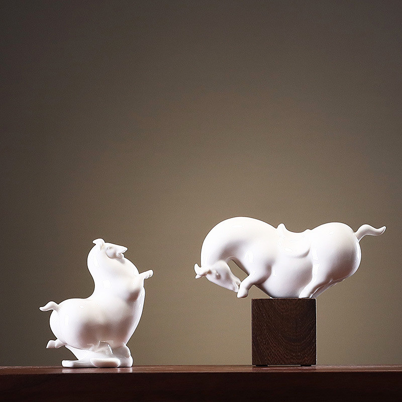 热销创意陶瓷唐马摆件家居客厅摆设办公室玄关工艺品装饰品白马样