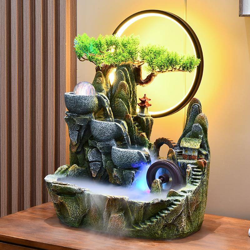 风生水起流水摆件循环水桌面凤水球室内招财风水轮假山水景加湿器