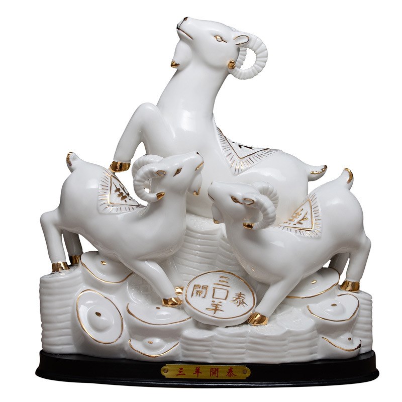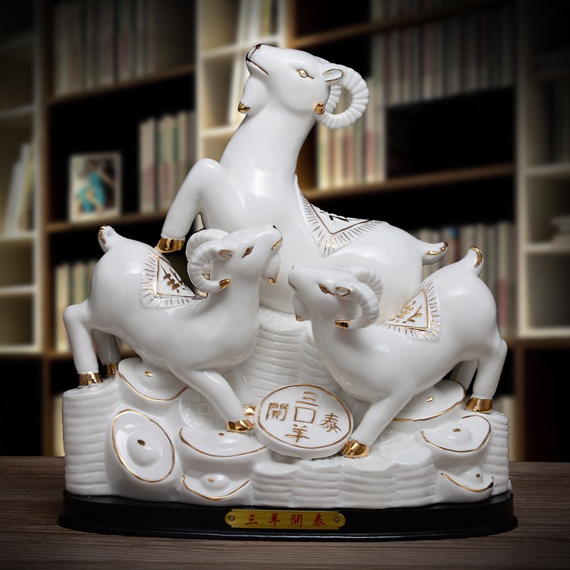 速发黄色陶瓷三羊开泰品摆件招财镇宅缺角补角三开泰工艺羊家装饰