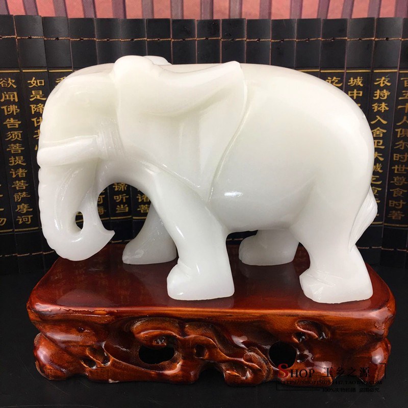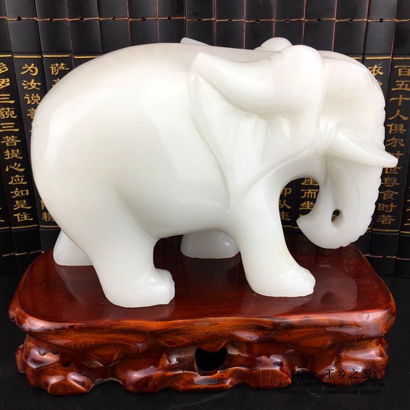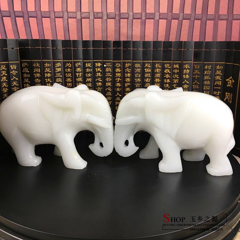 天然白玉大象摆件一对客厅玄关酒柜书柜桌面简约新中式装饰品送礼