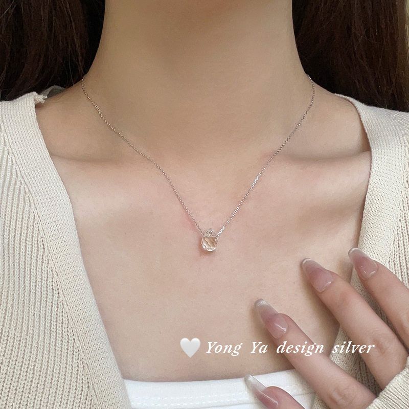 S925纯银切面水滴珠项链小众自然气质甜美ins风小清新锁骨链代发