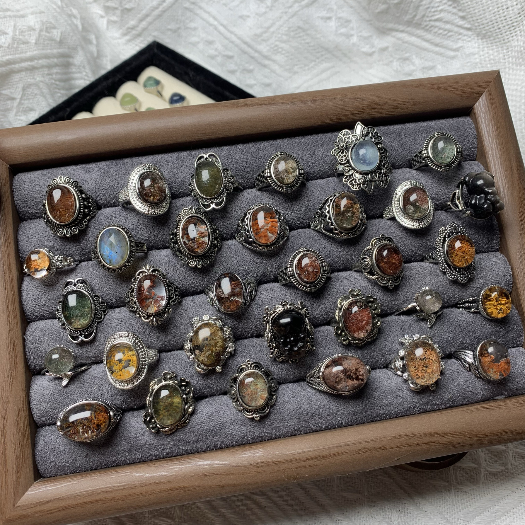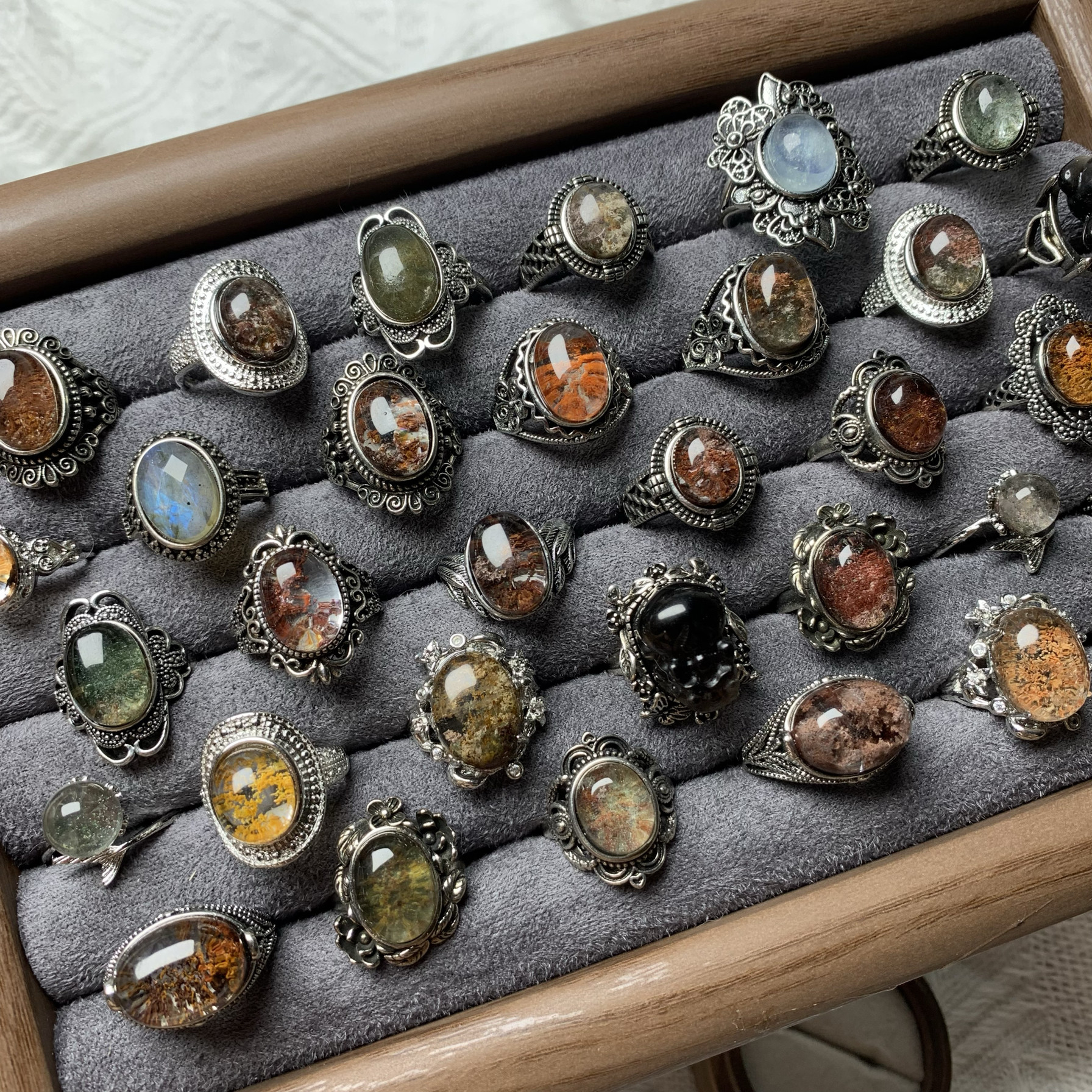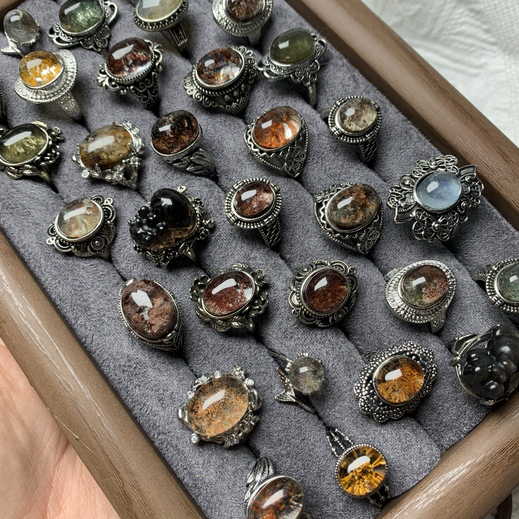 地脉拾光丨幽灵水晶戒指女复古新中式孤品白铜绿幽灵孤品5.28