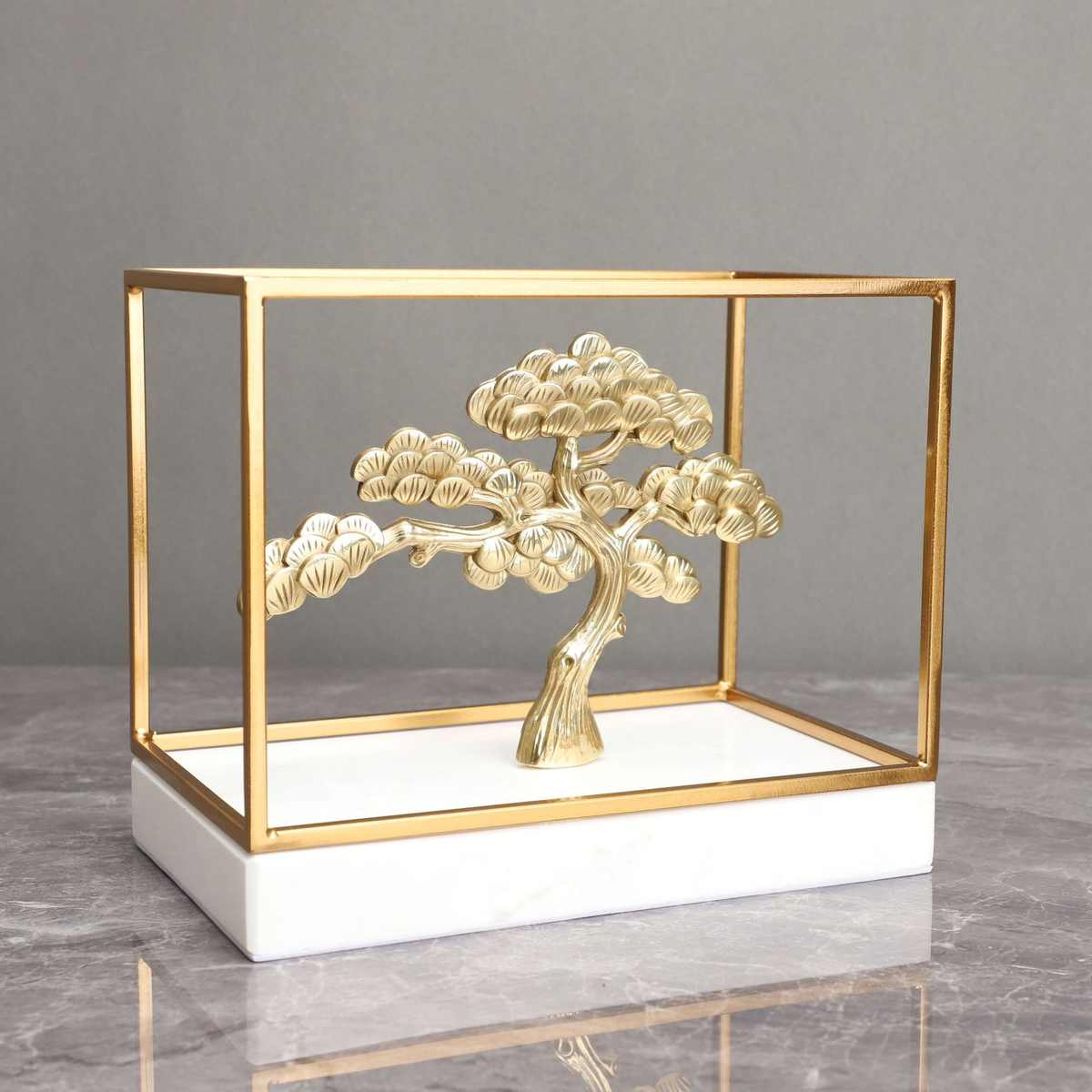 新中式大理石迎客松框架样板房售楼部卧室书房客厅电视柜家居摆件