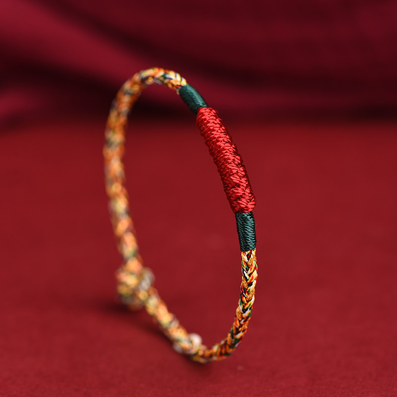 五彩绳张真源同款金刚结纯手工编织复古民族风男女情侣酒红色手链