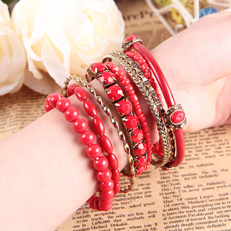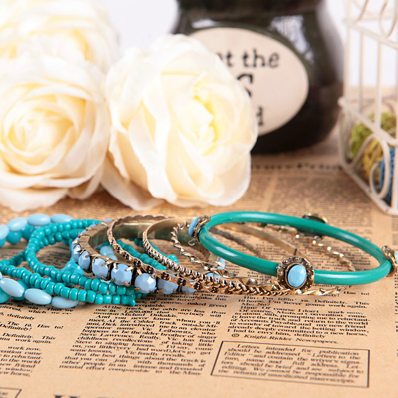 经典波西米亚风多层串珠手链镶嵌绿色宝石手镯女百搭配饰首饰包邮