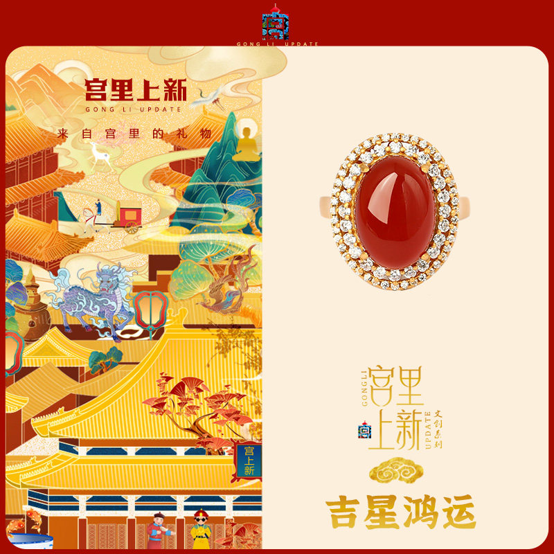 宫里上新红玛瑙戒指女纯银轻奢高级感红宝石红色母亲节礼物送妈妈
