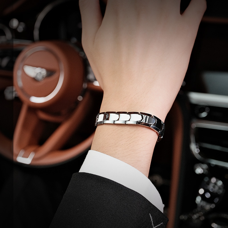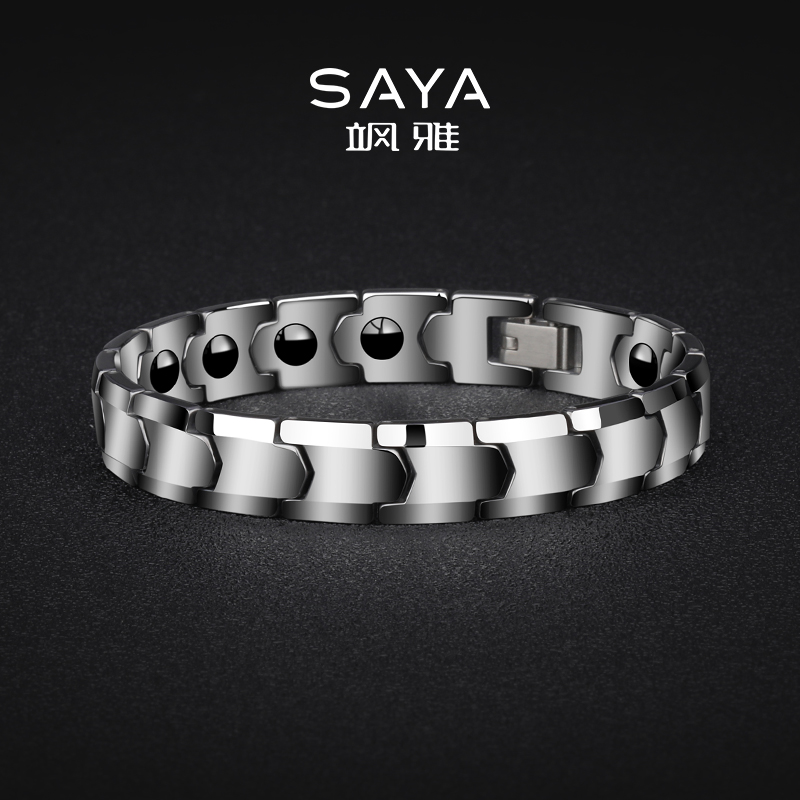 飒雅钨金男手链简约霸气时尚商务百搭休闲磁石个性潮流单身手链男
