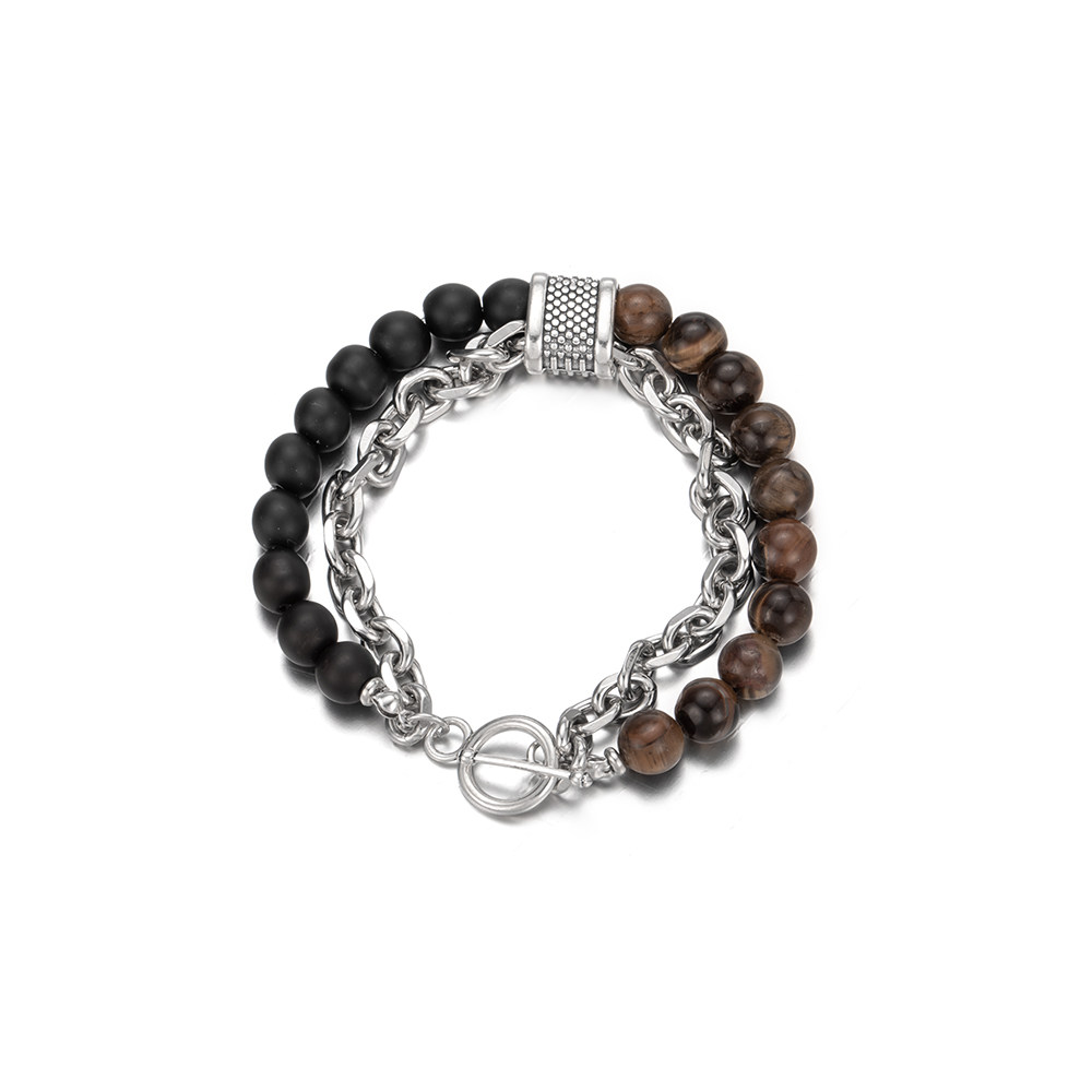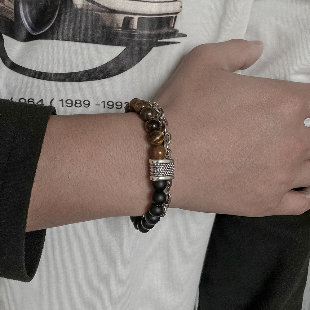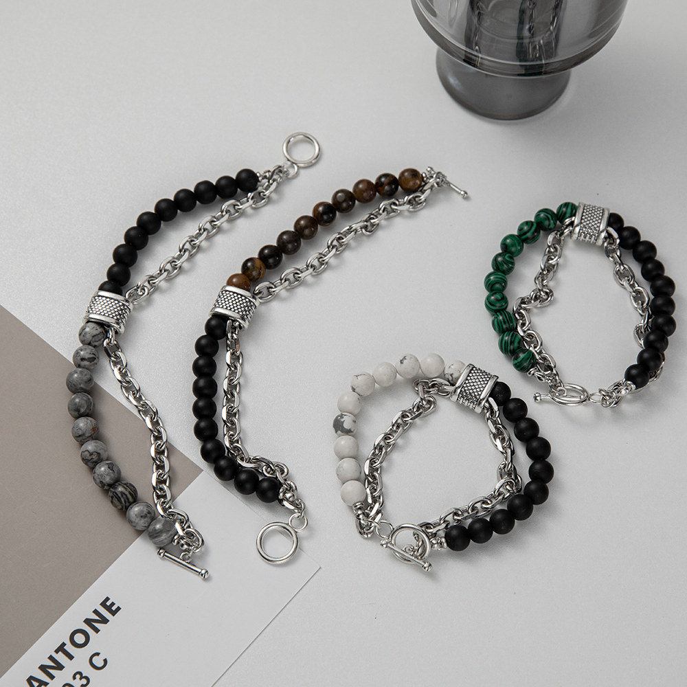 响尾双层手链ins小众设计高级感双链条拼接撞色串珠OT扣男士手链
