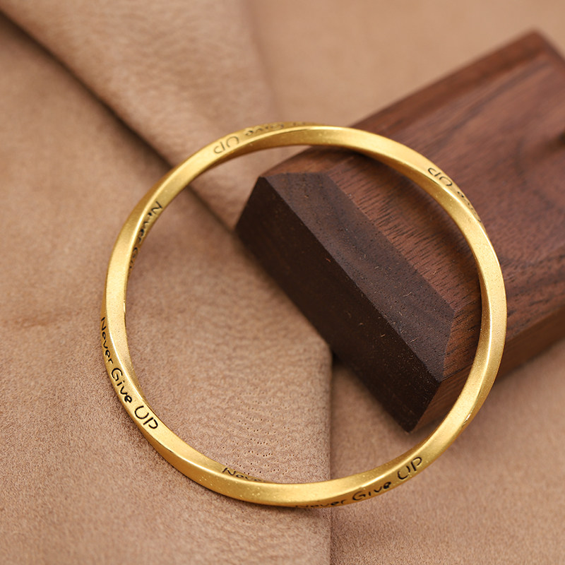 3D硬金莫比乌斯环麻花手镯 足金999简约女款手环个性潮范永不言弃