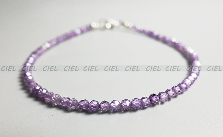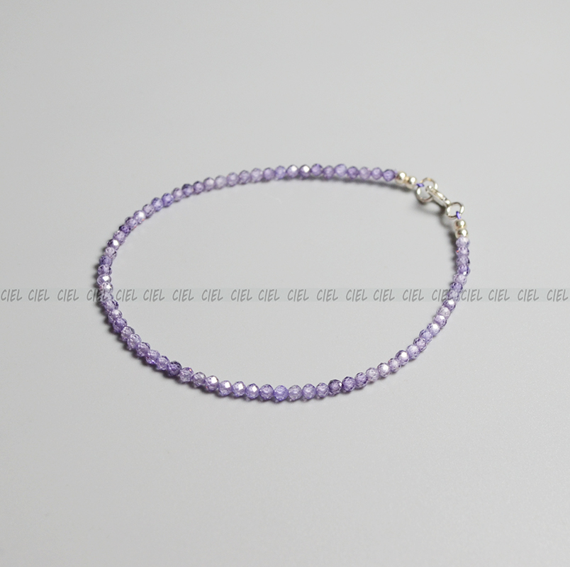 Ciel原创手作天然紫色锆石极细手链2mm切面脚链显白手串清新项链