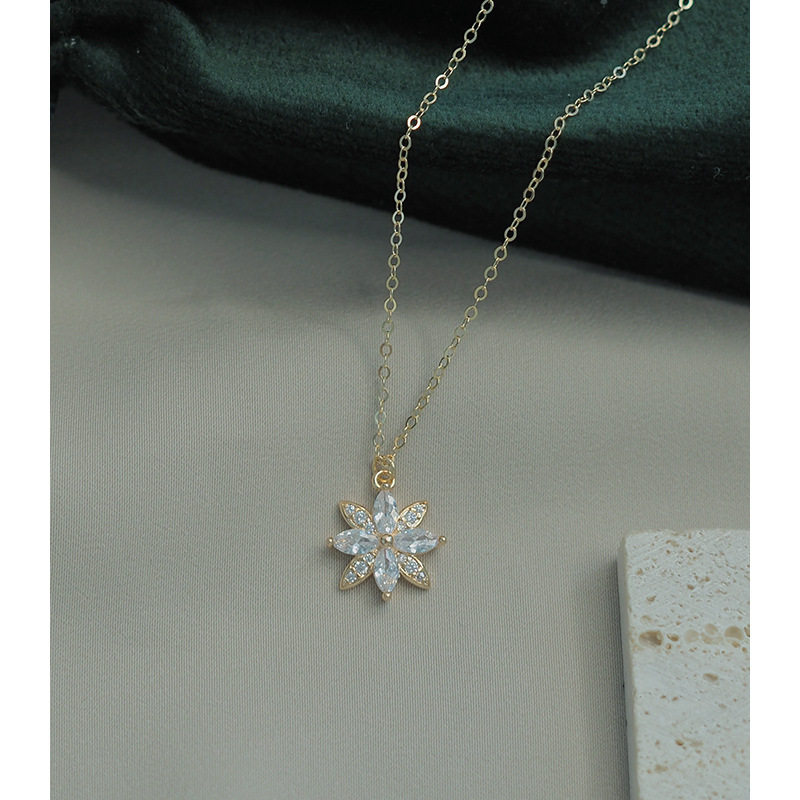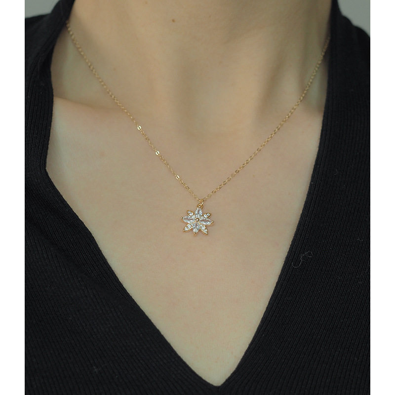 ROMANTIC925纯银镀K金雪花项链女简约气质日韩百搭通勤锁骨链