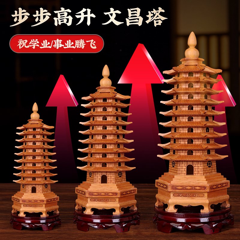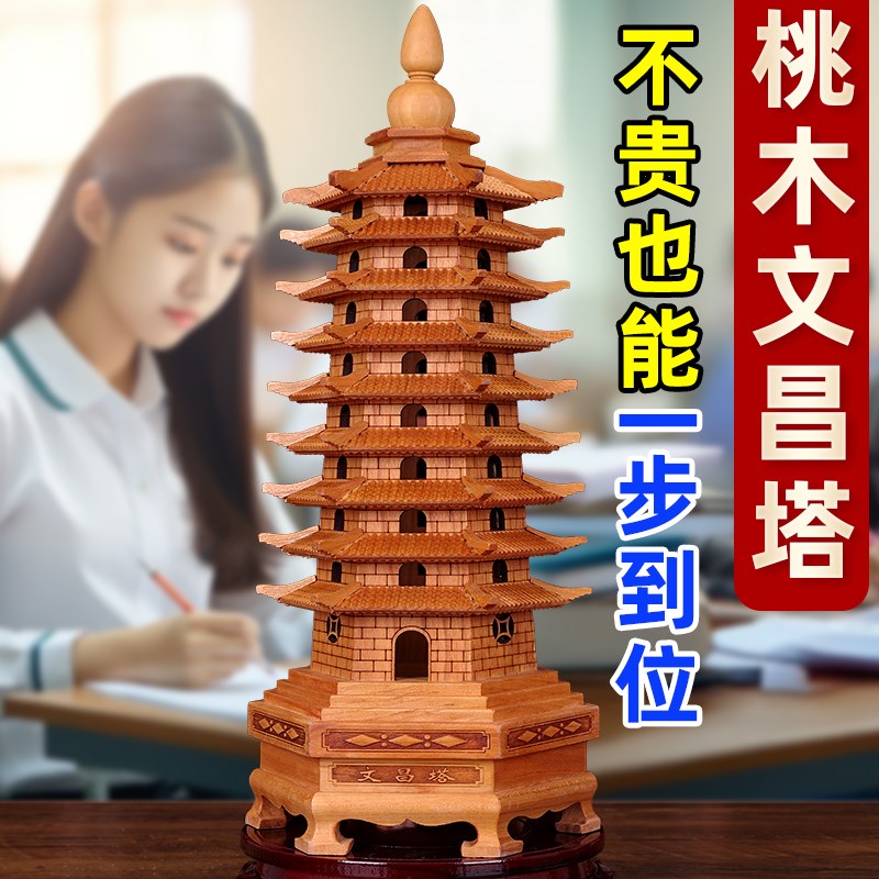 桃木文昌塔摆件木质学生用的七层九层十三层书房书桌办公室桌摆设