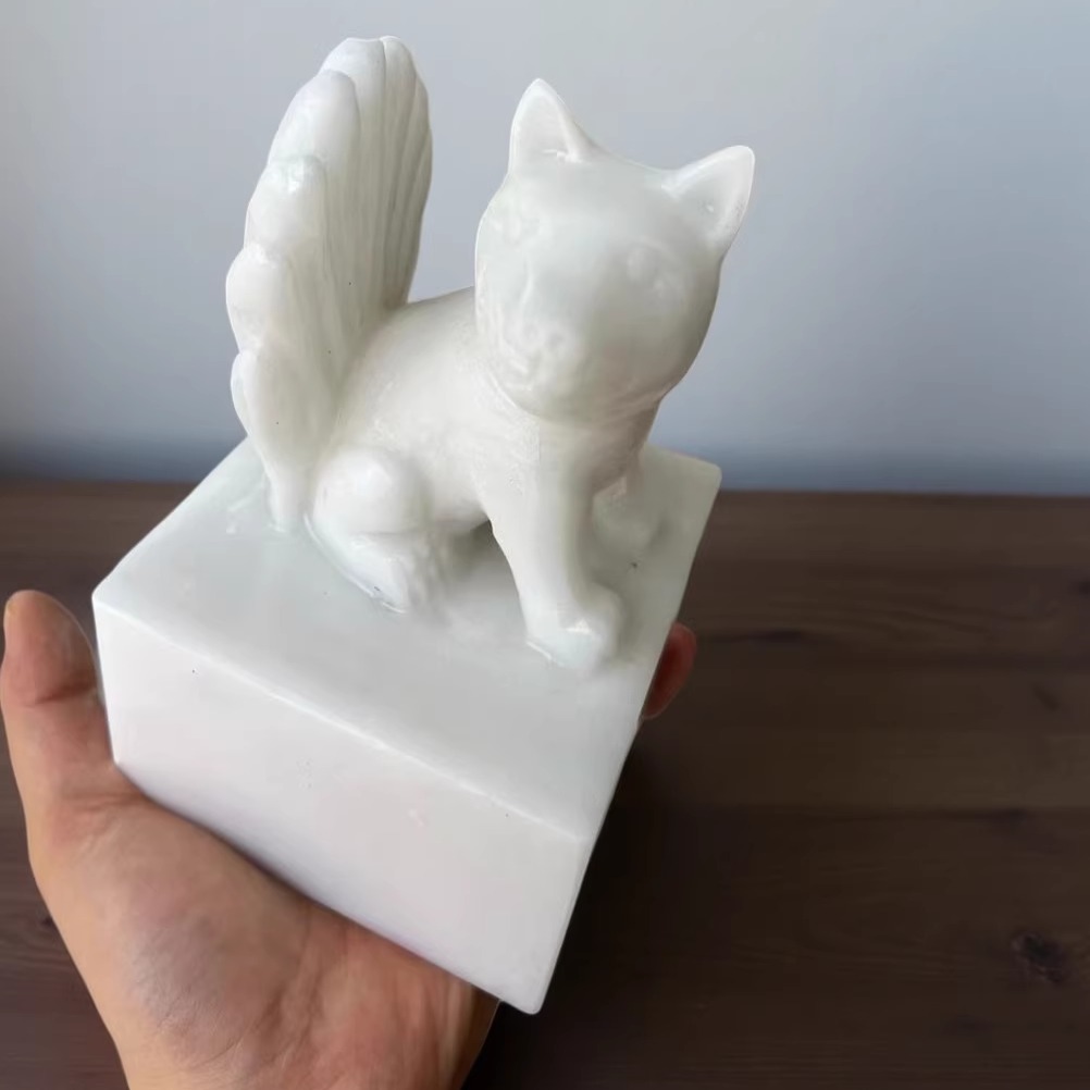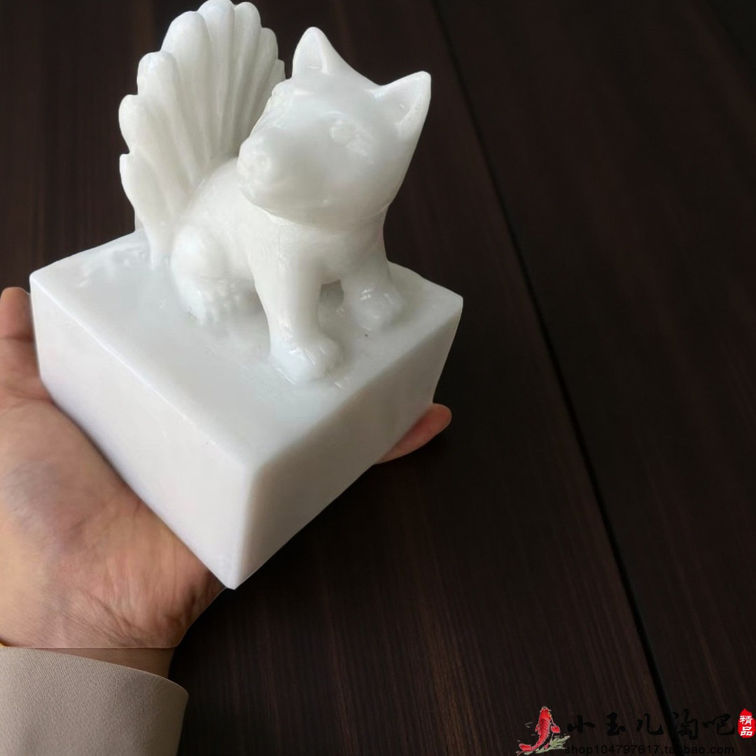天然玉石九尾狐玉玺办公室摆件书桌胡黄常蟒印章白狐印客厅办公室