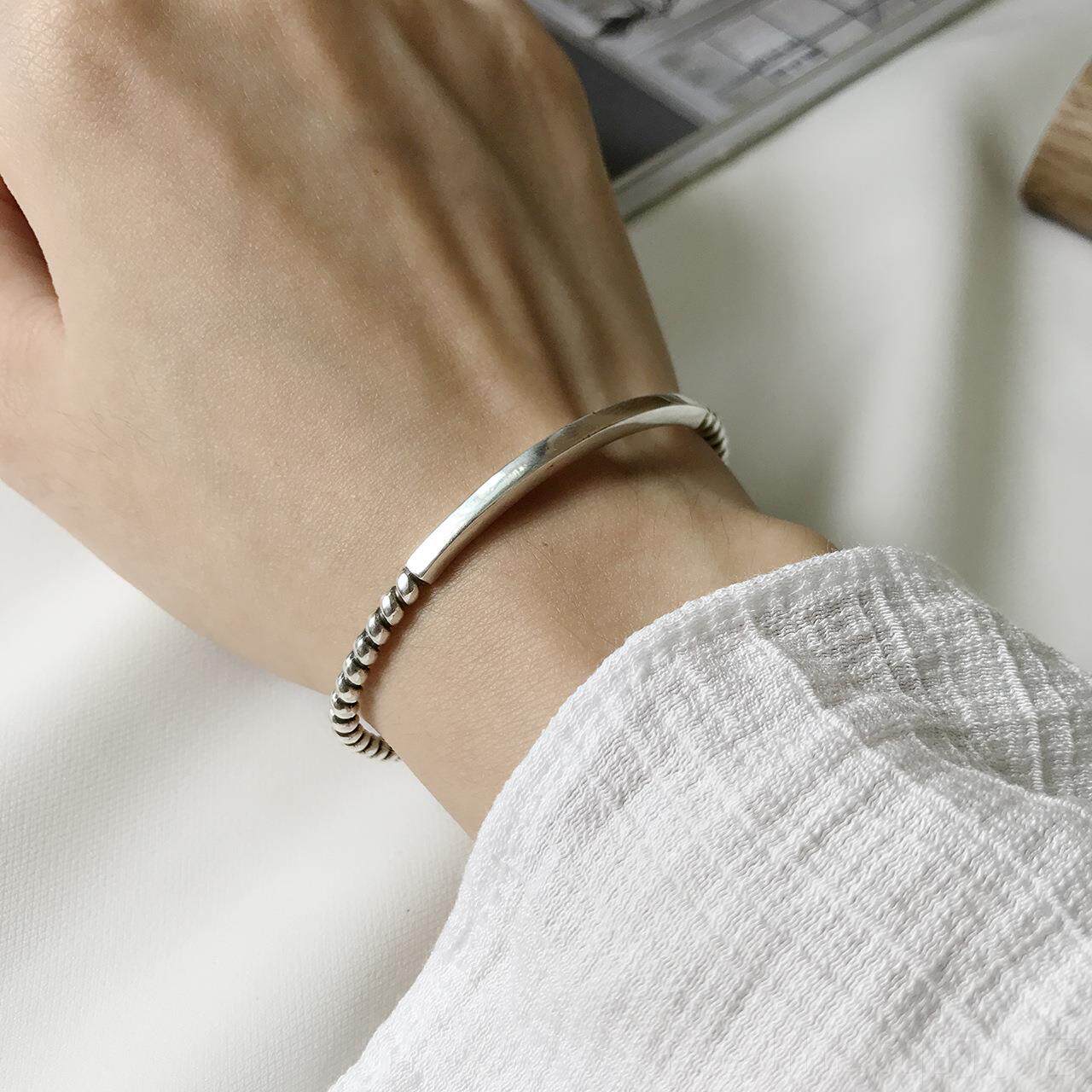 新款韩创意925纯银简S约复古做旧麻花绞绳方日管个性镯手工手手饰