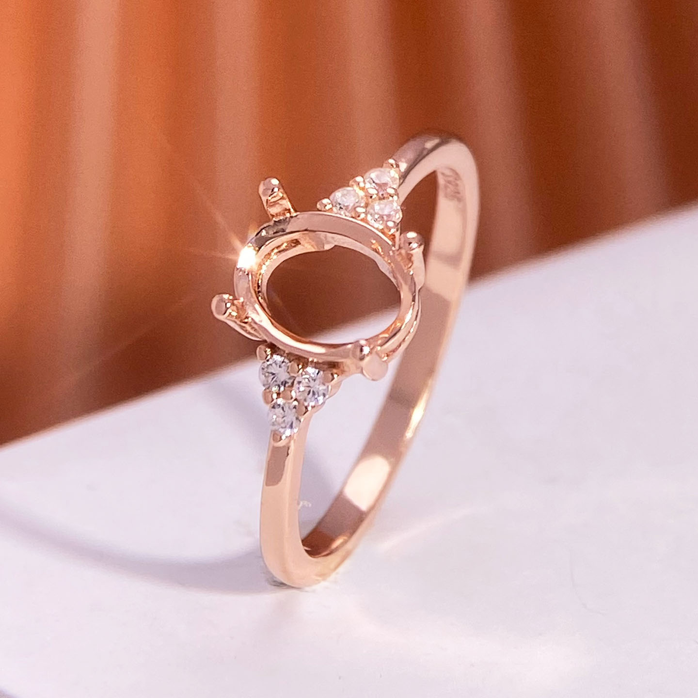 简约百搭戒指空托S925纯银宝石镶嵌闭口戒托女椭圆形5*7mm-8*10mm