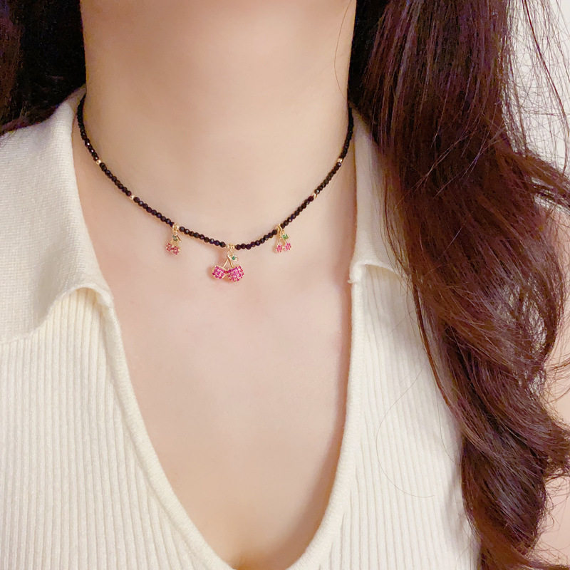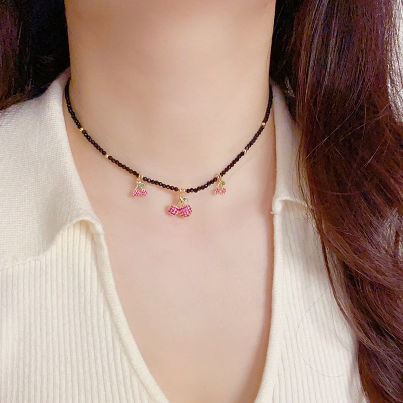 黑色人造水晶樱桃复古轻奢项链个性时尚甜酷冷淡风锁骨链女