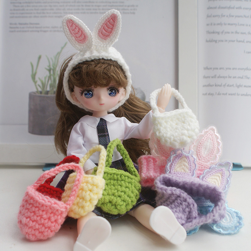 芭比娃娃毛线针织手提袋小包包发箍兔耳朵针织发带可爱头饰配件