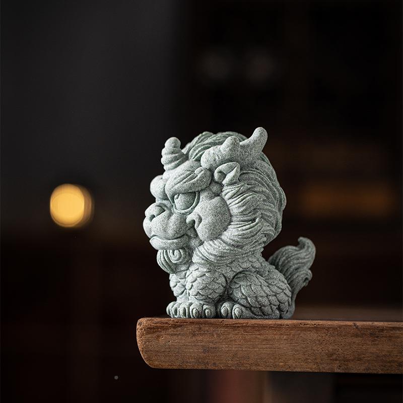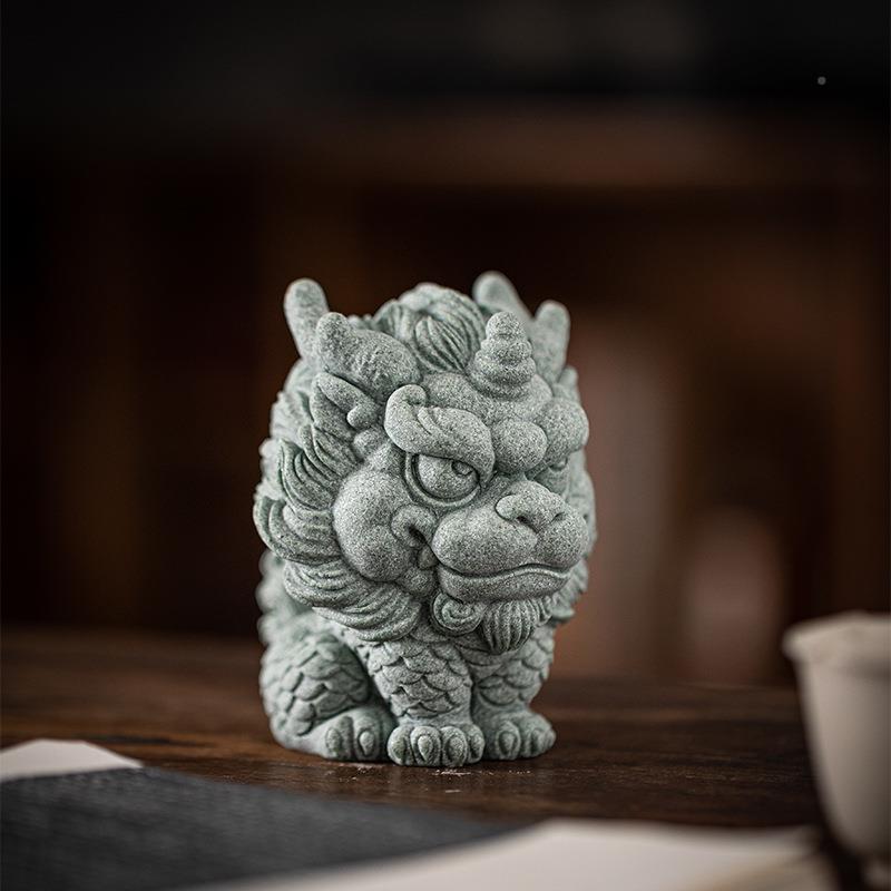 青砂石国潮风瑞兽麟物摆CSZW-BJA件动意家居麒客厅桌面鱼缸造景创