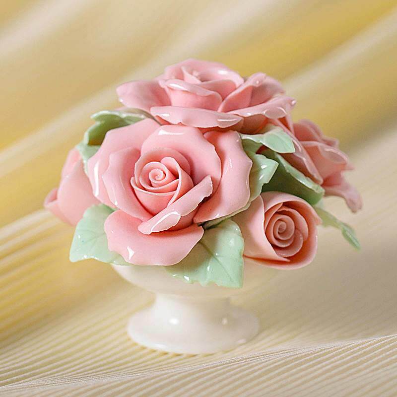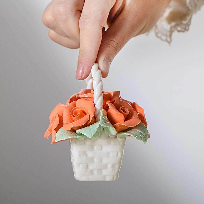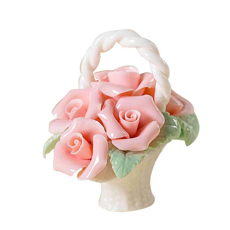 陶瓷手工花篮家居装饰花艺小摆件车载客厅桌面电视柜仿真花朵摆件
