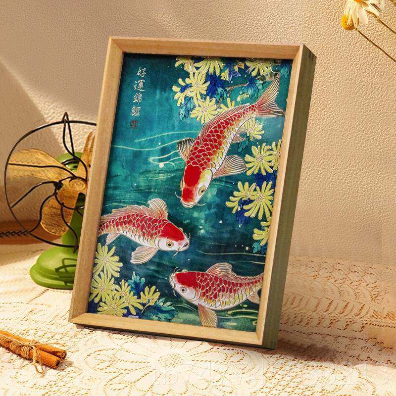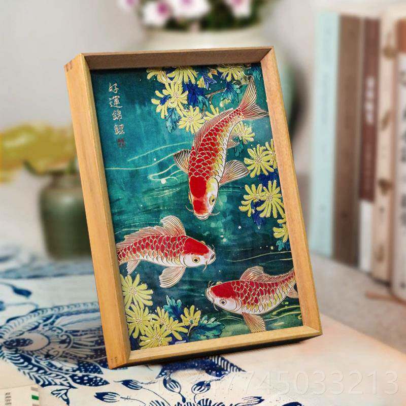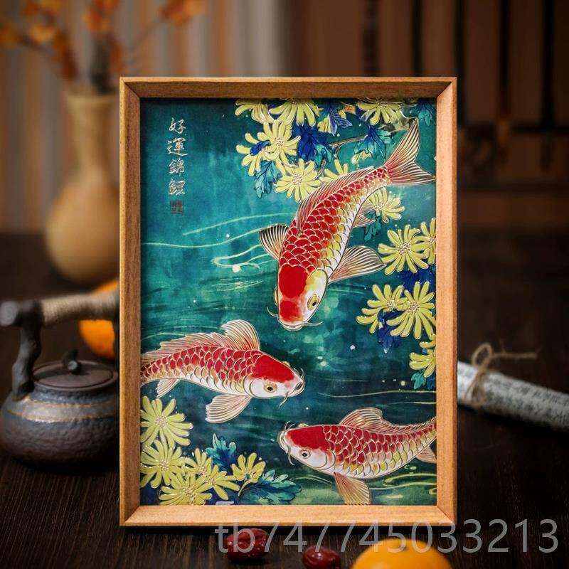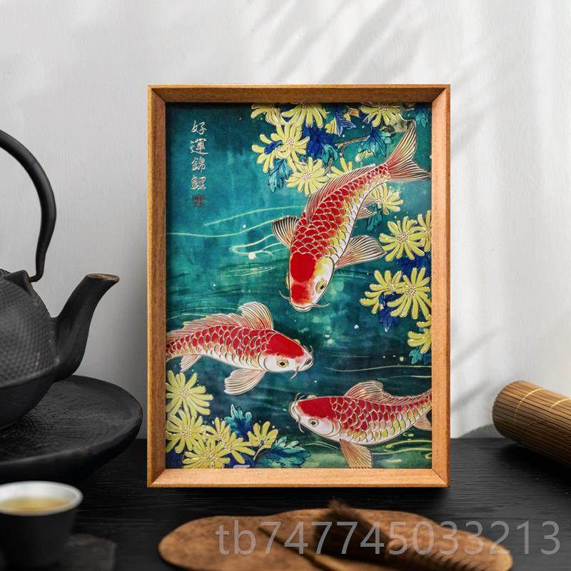 新款红色好运锦鲤鱼雕画 画桌装面摆件铜手饰工錾刻客厅画 画摆台