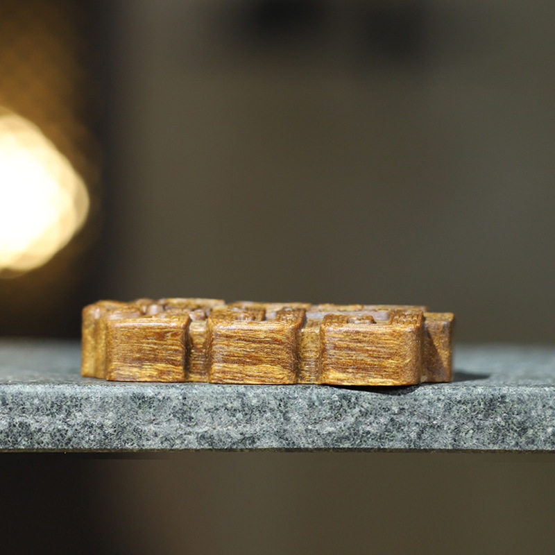 奇楠沉香雕刻单面青铜纹牌子吊坠挂件中国风手把件文玩工艺品