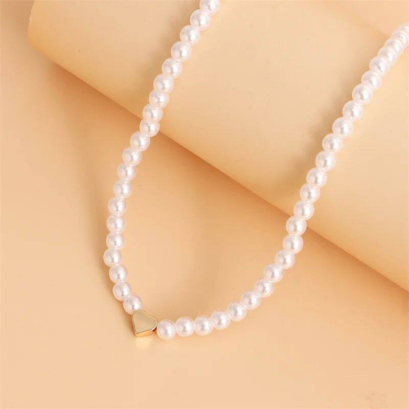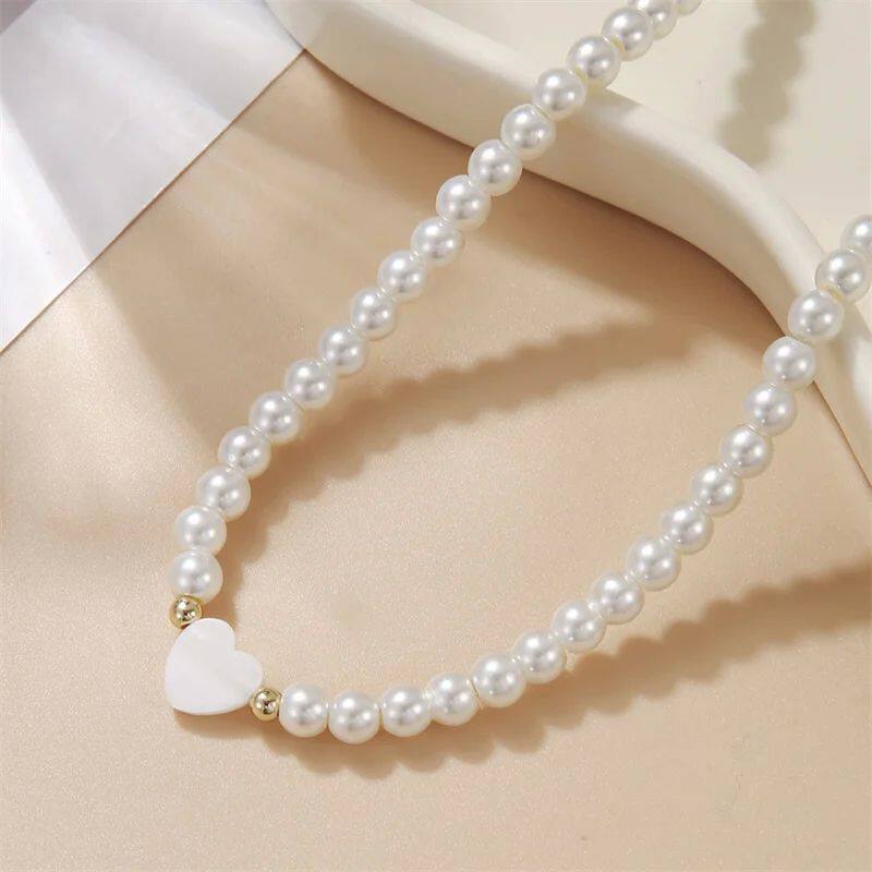 New Trendy Shell Heart Imitation Pearls Necklace Women Handm
