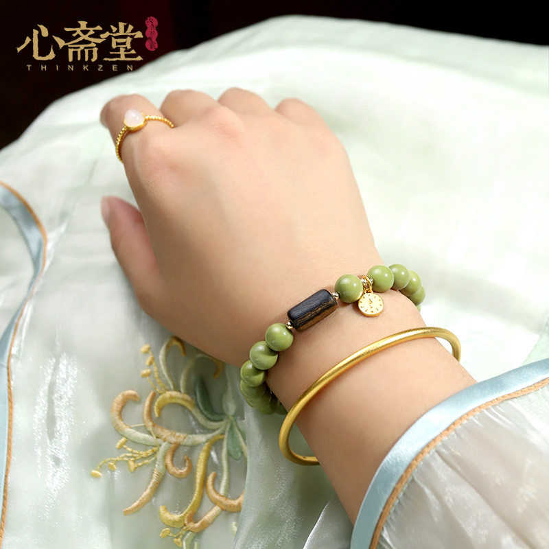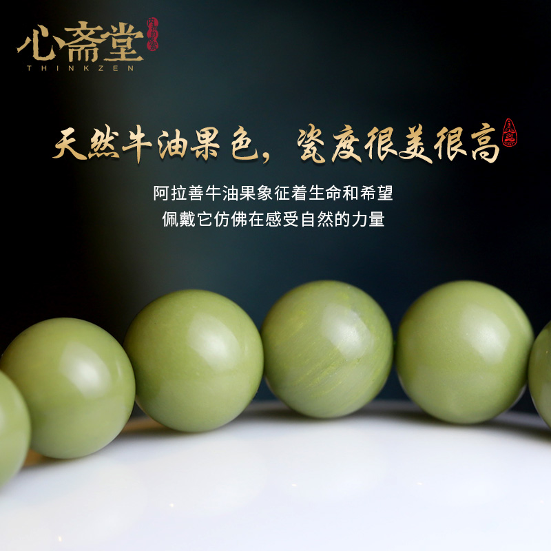 心斋堂【绿度母】天然沉香手串牛油果绿抹茶阿拉善玛瑙财神手链女